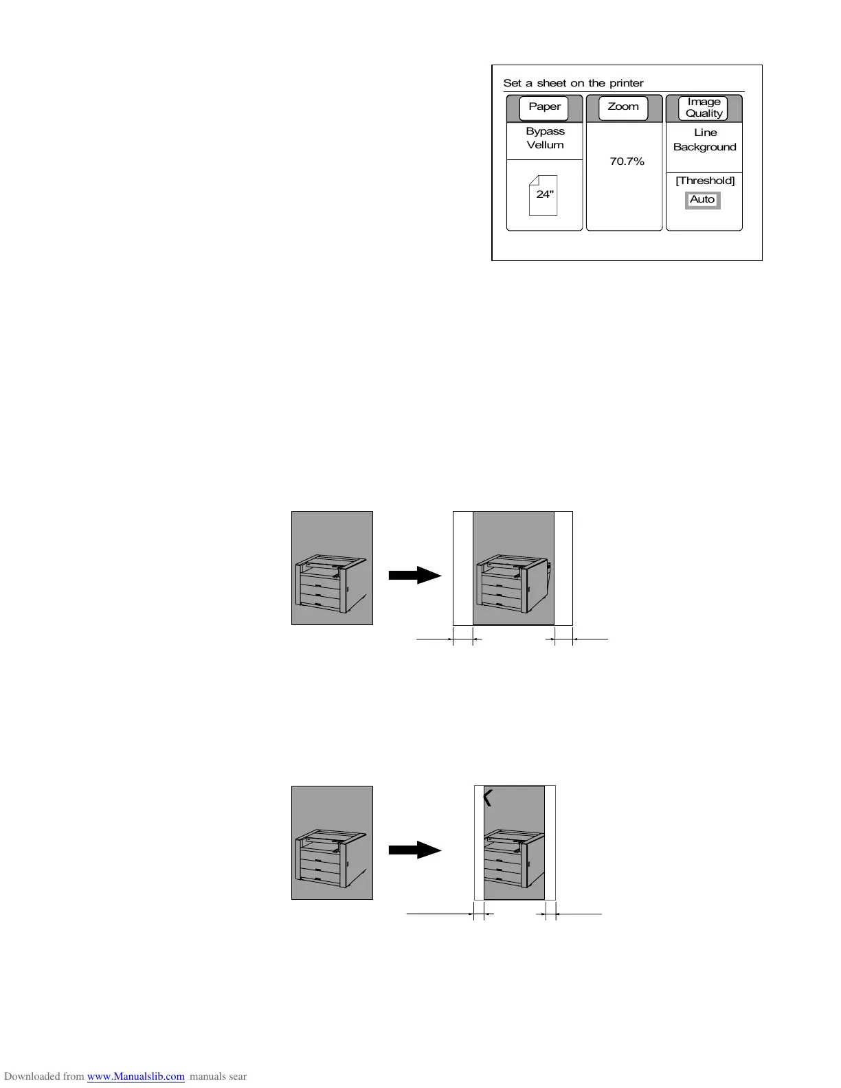 2. When you use a smaller (narrower) sheet media than the sheet size setting, only the central