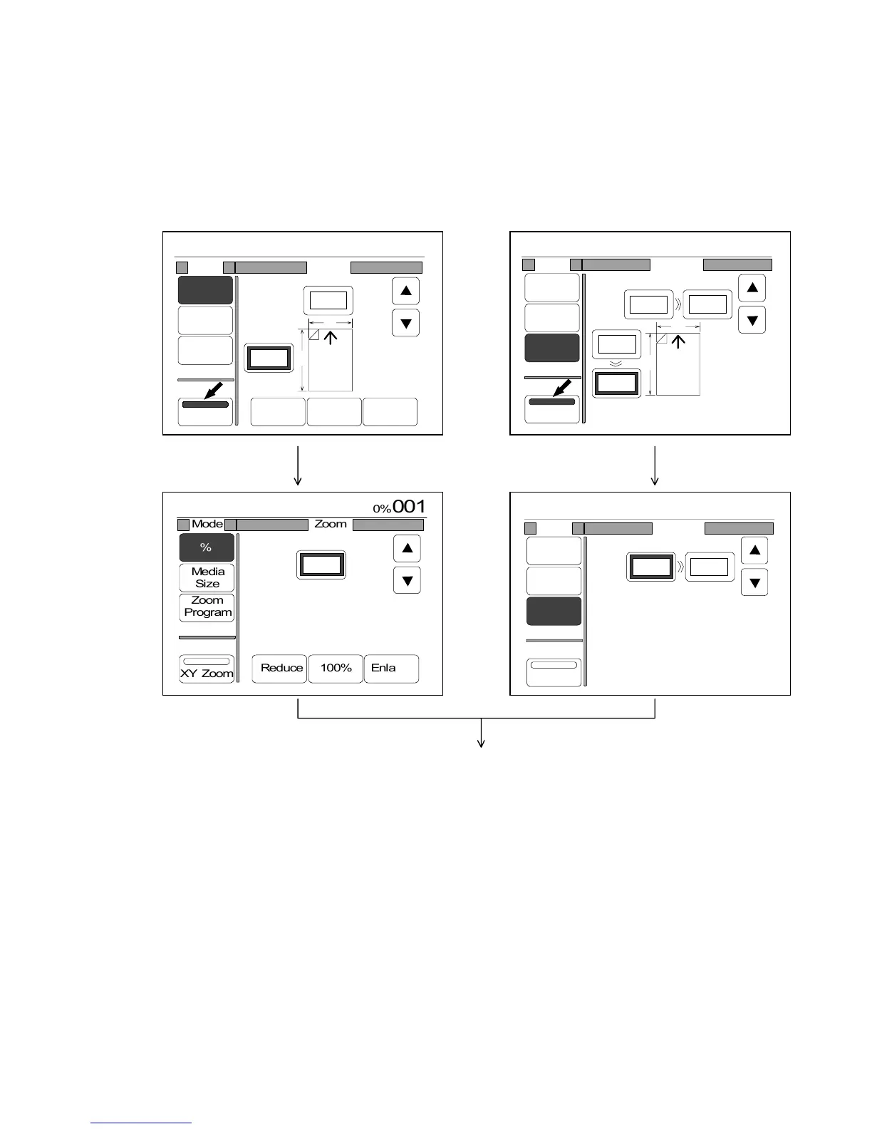 setting modes in order to cancel zoom ratios (X) and (Y).