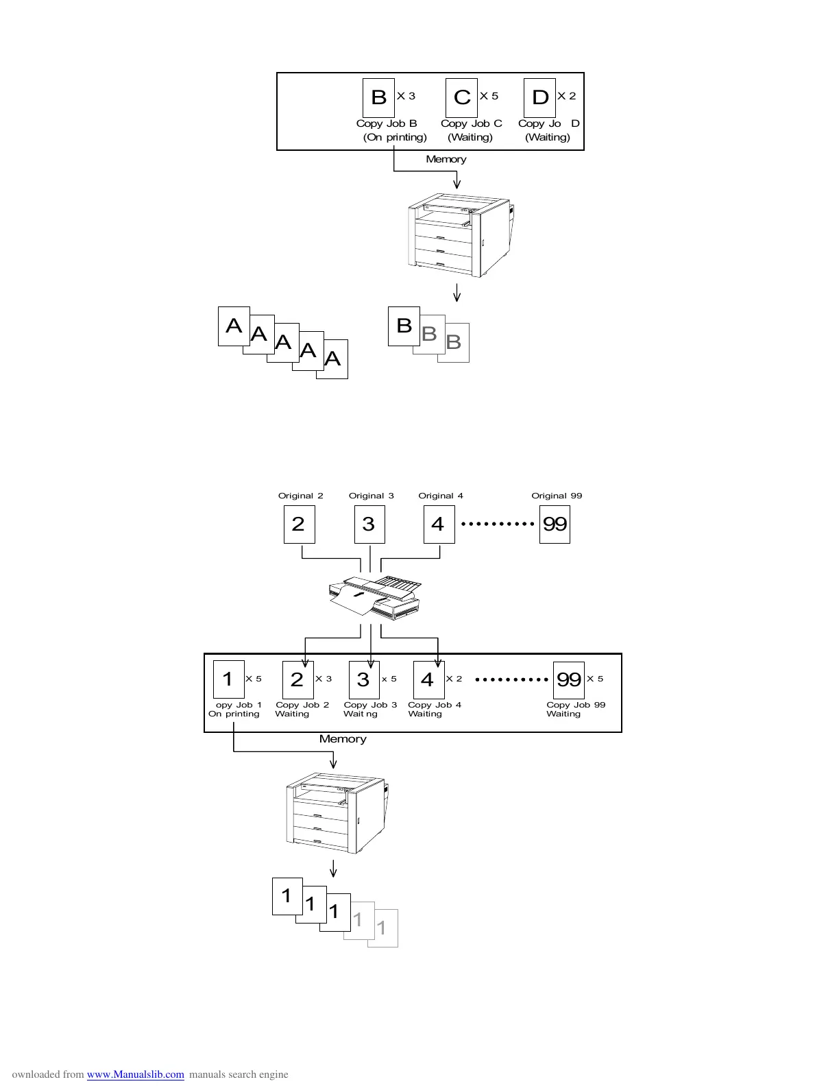 When the printer has finished to print out the Copy Job A, it starts printing out the next Copy Job B.