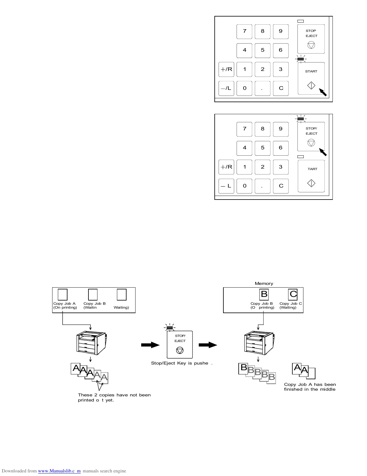 Note : If you push the Stop/Eject Key to stop printing when some Copy Jobs are stored in