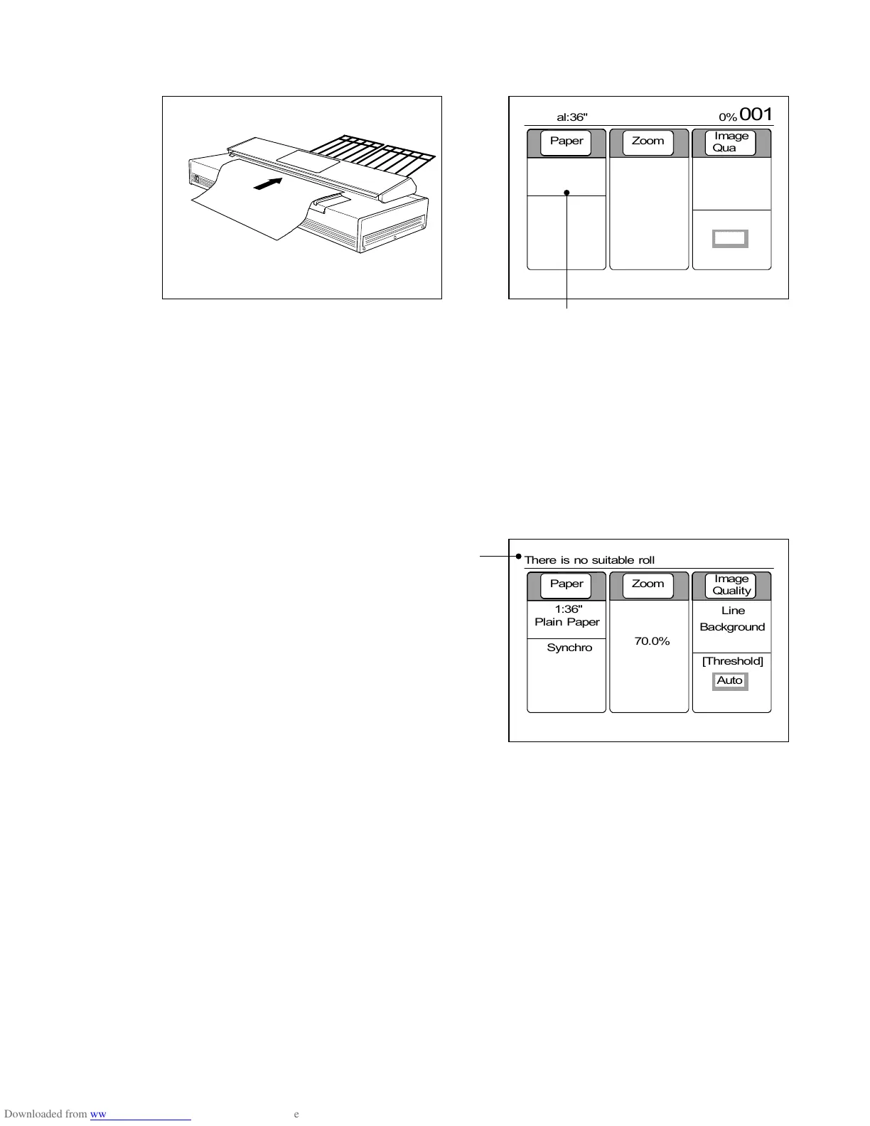 Note : If the printer has no roll media that matches the copy image size, the LCD indicates the