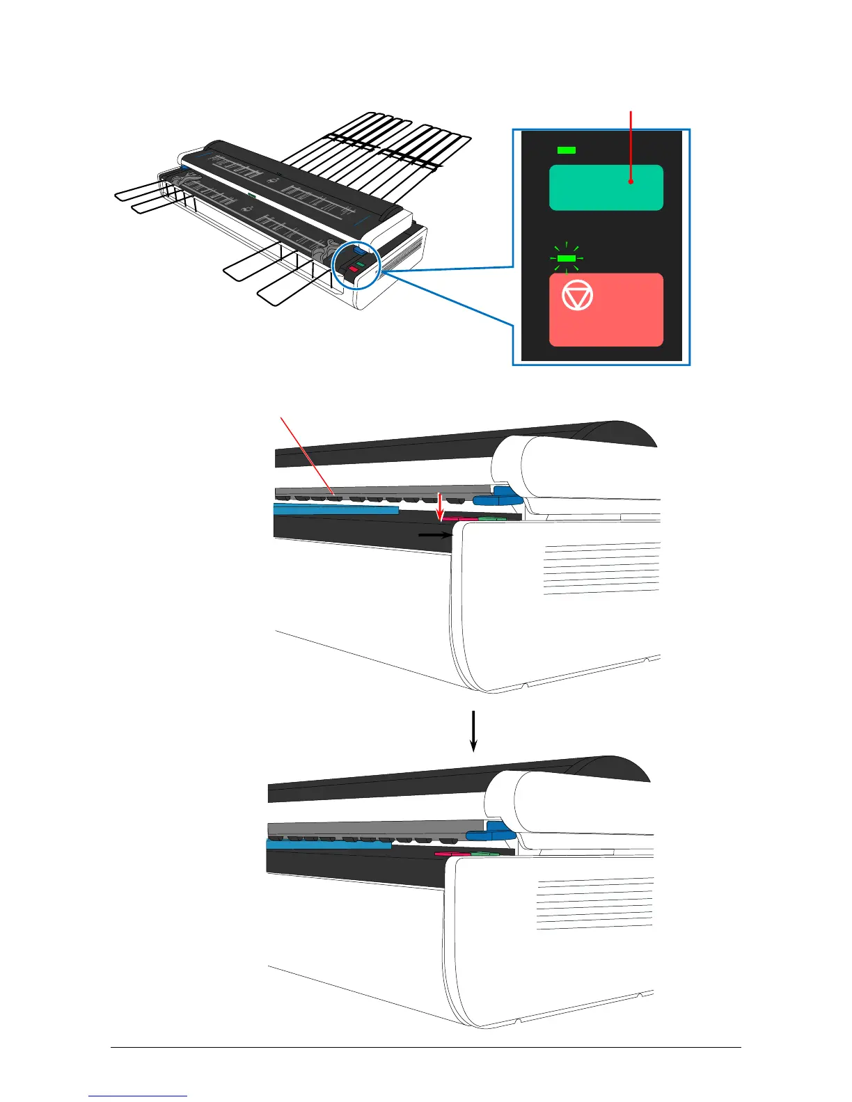 8. Press the BOARD Button. The Document Press Unit moves down and holds the original