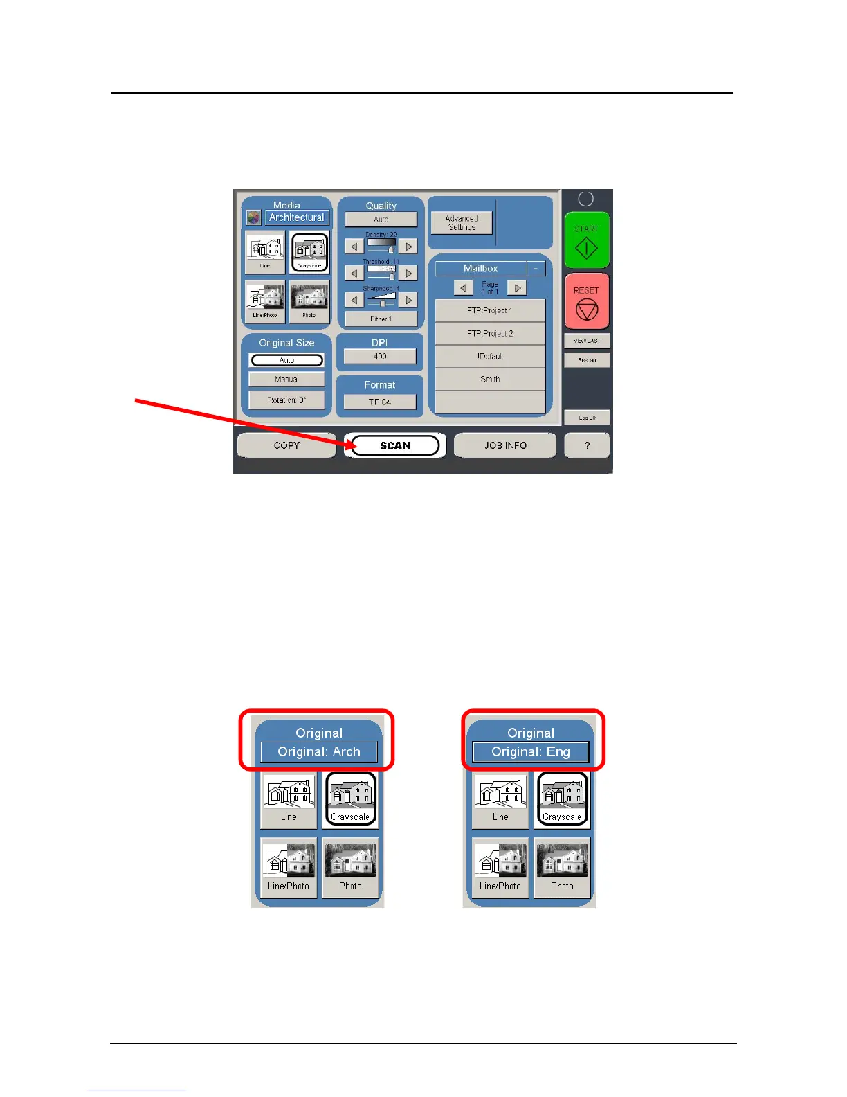 This button is used to select the Size Mode of Engineering or Architectural and Original