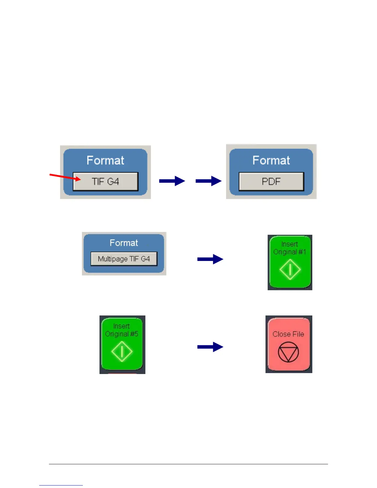 Press the “Format” button to toggle through the file formats available.