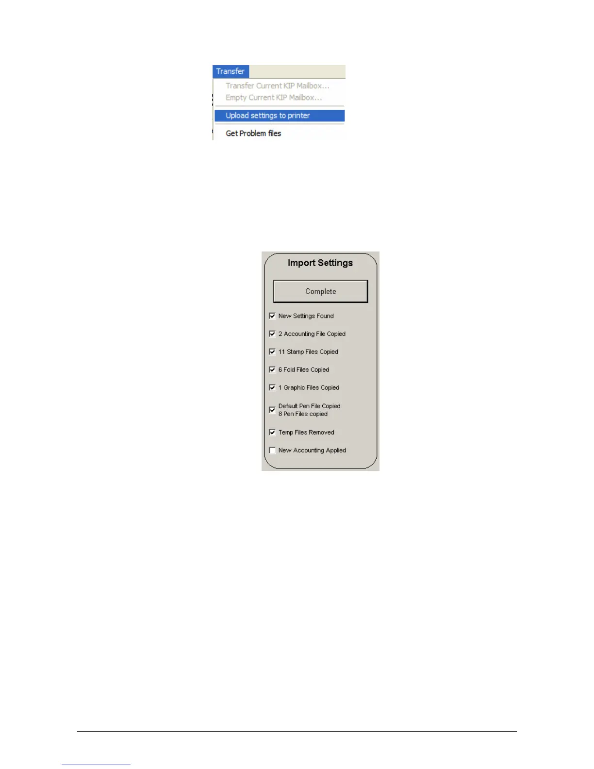 c) Send to the KIP IPS by using Transfer and then Upload Settings to Printer
