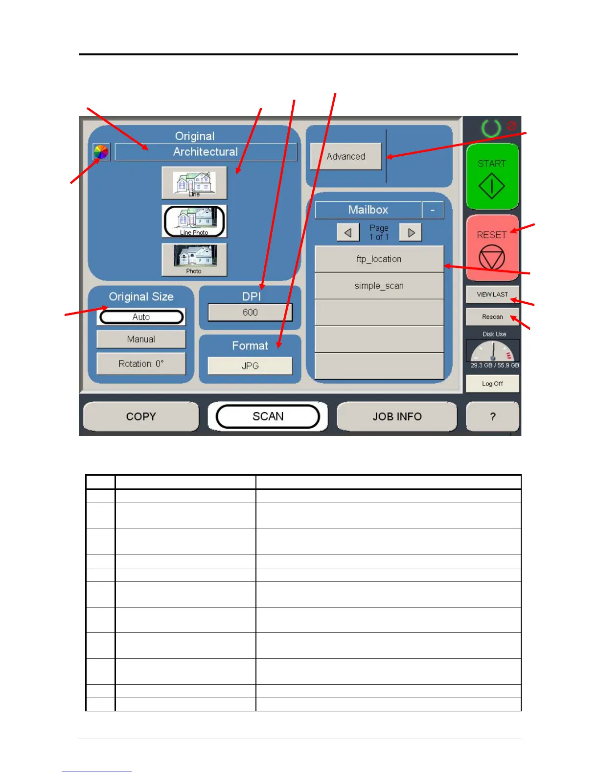 8 Reset / Stop Resets the system to default settings. Stops a scan