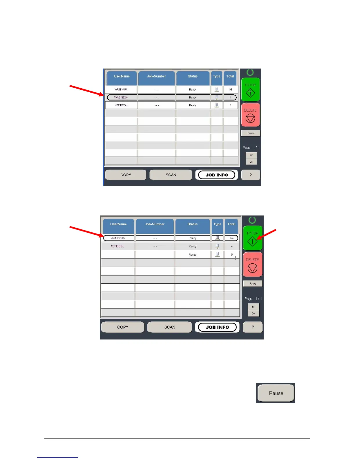 may require the printer to pause) press the pause button.