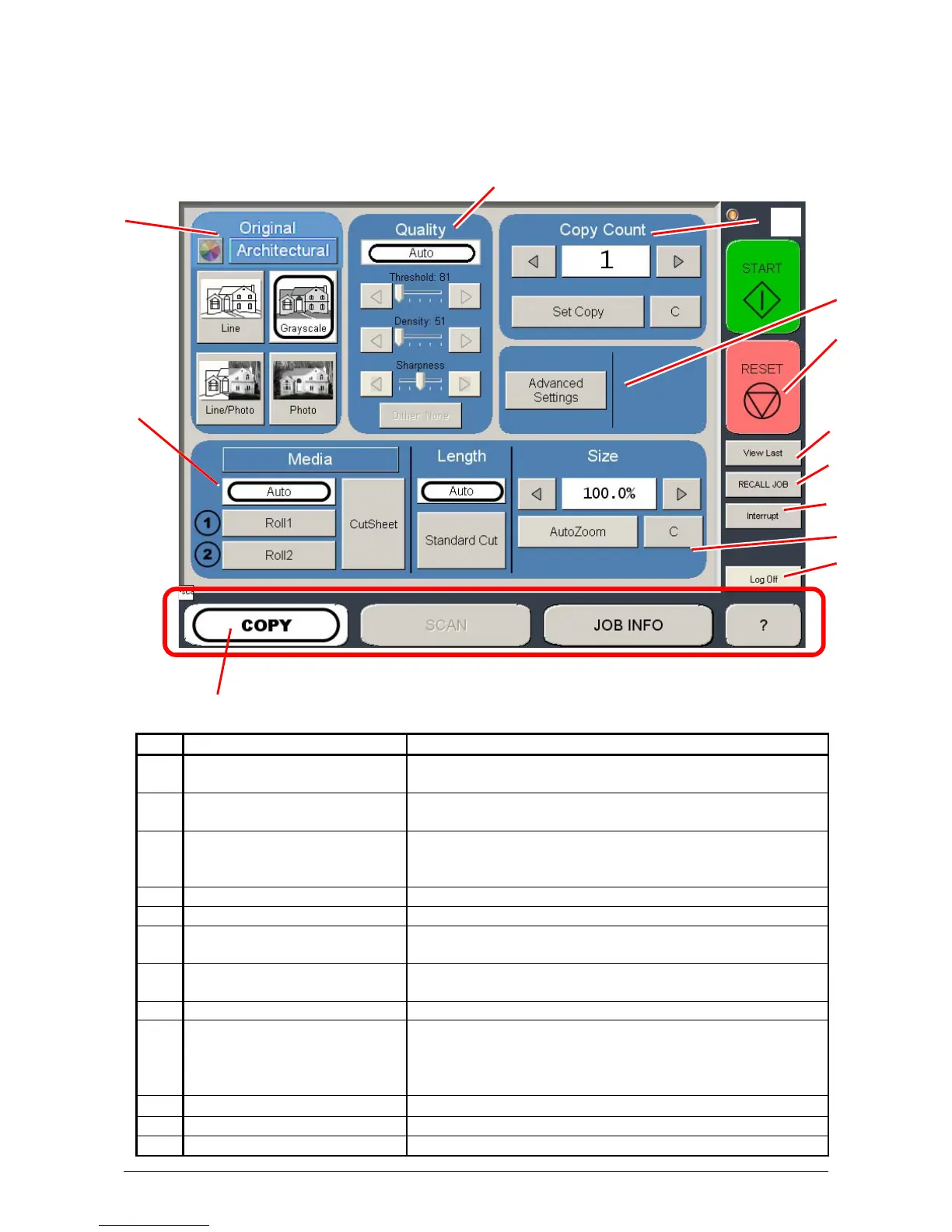10 Interrupt Pauses the network print jobs to print any copy jobs
