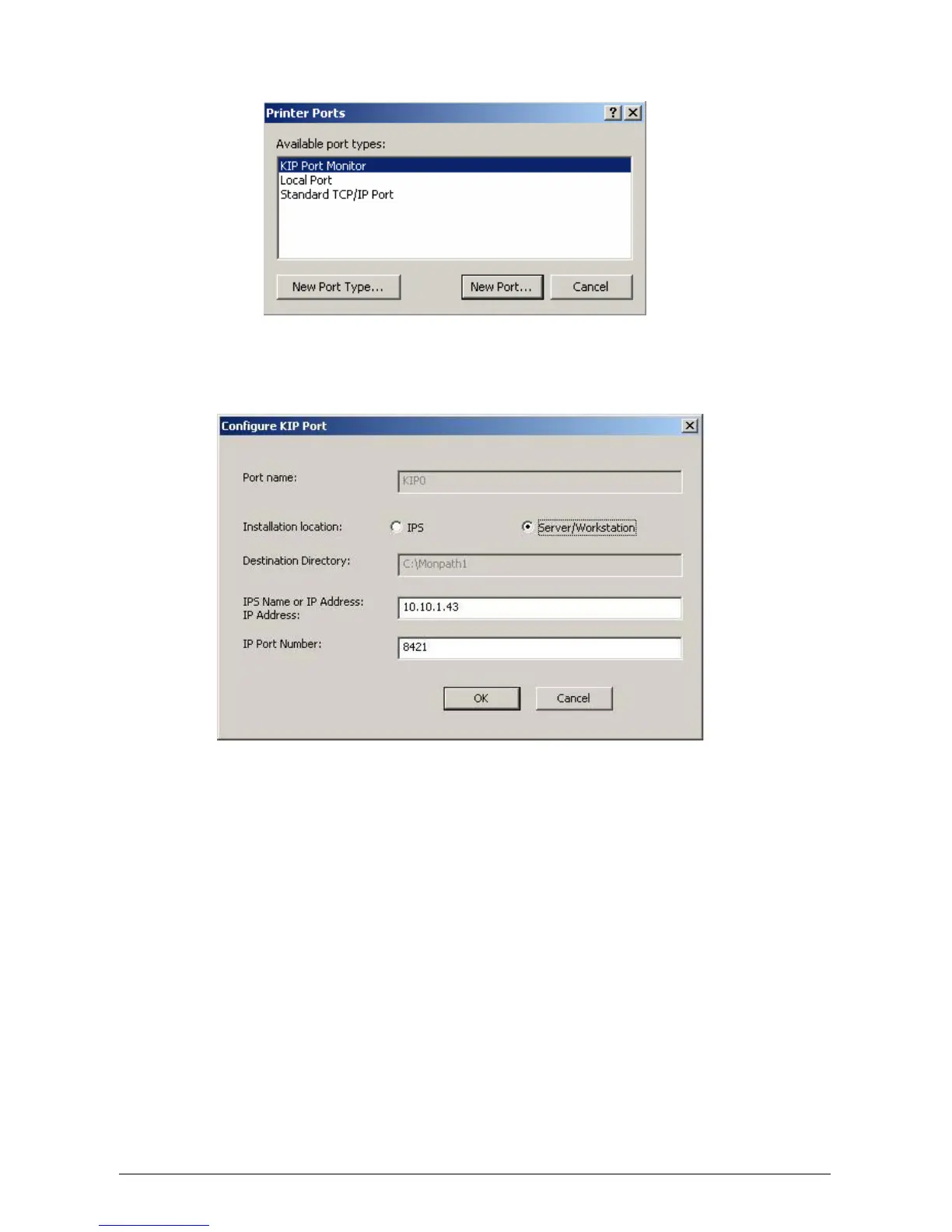 f) Select KIP Port Monitor and click New Port.