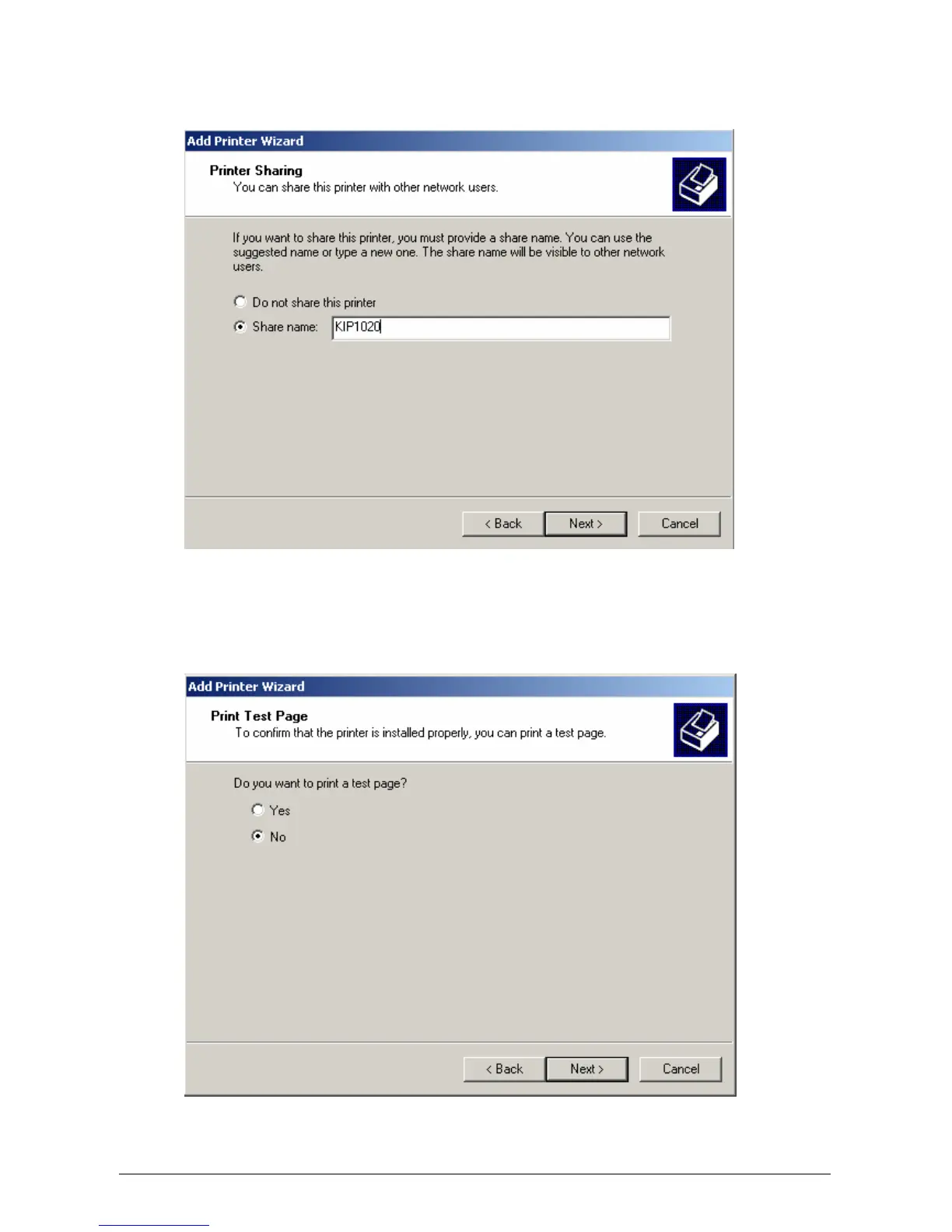 j) Determine if you would like to print a Test Page when prompted. Select Next.