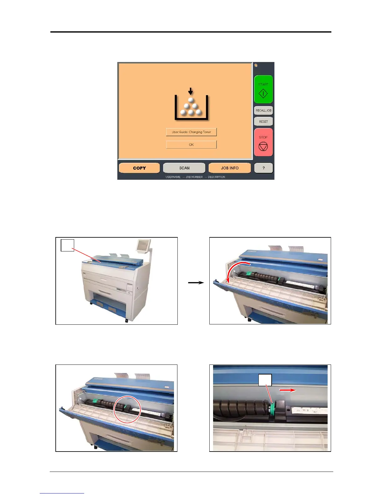 easier access, by pressing “User Guide : Changing Toner” on the screen)
