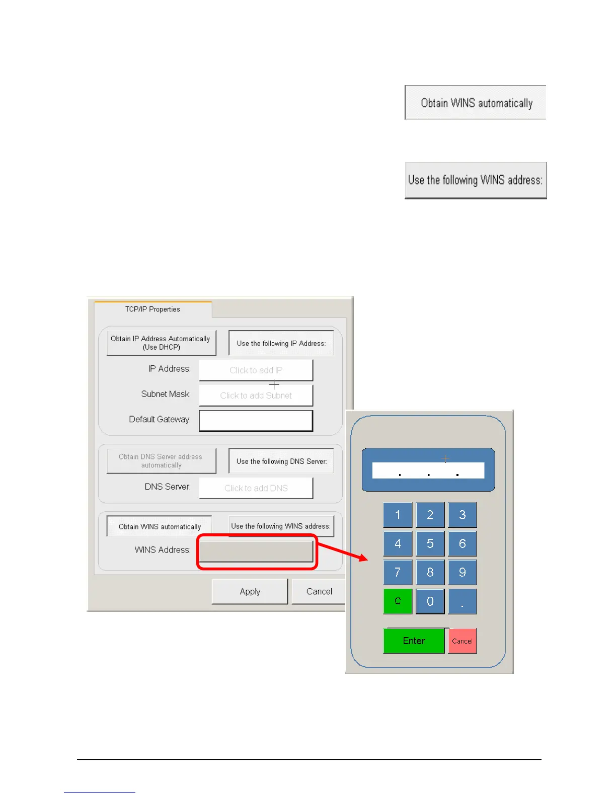 b) Press “Use the following WINS” button to enter