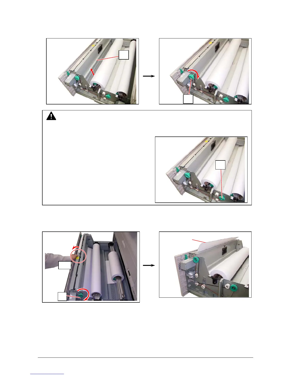 Then rotate the Paper Feeding Knob (2) clockwise so that the feeding rollers catch the roll