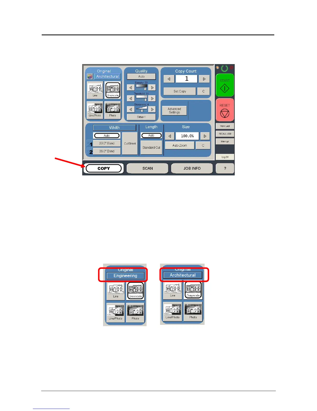 The main Copy screen is selected with the Copy Button.