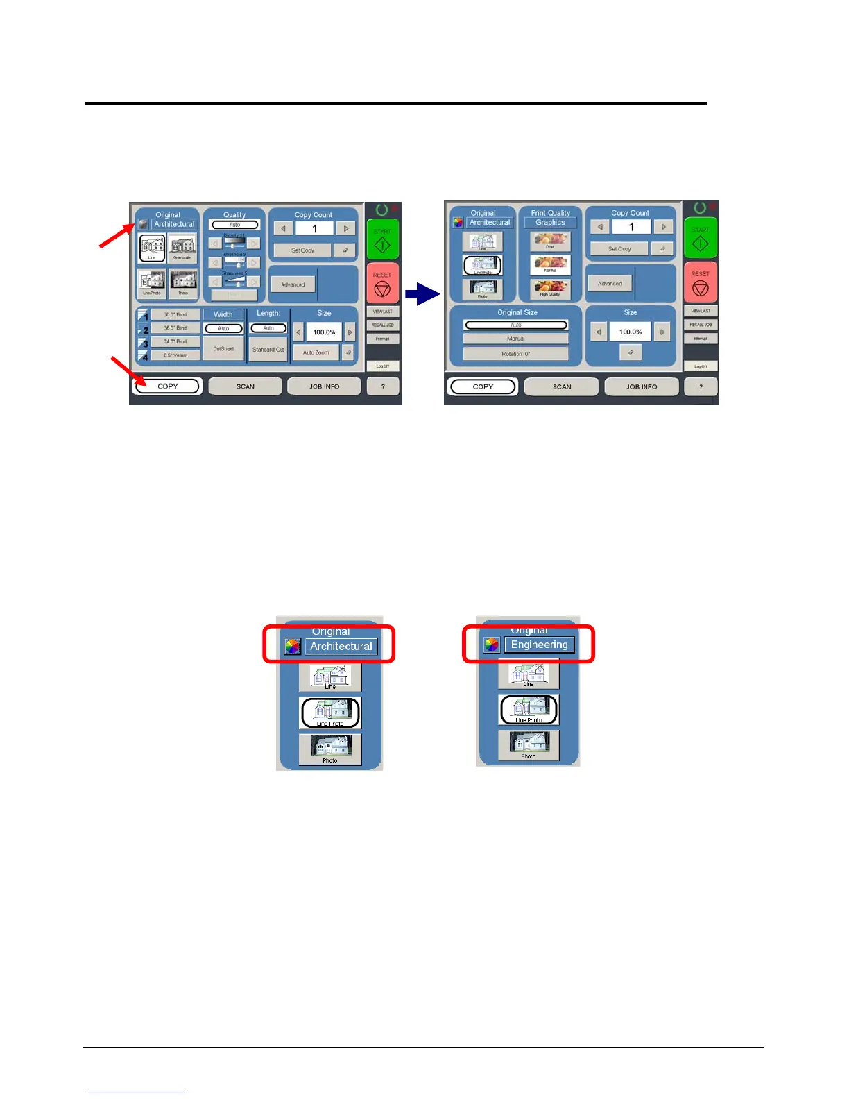 This region allows the setting of the Size Mode (Engineering or Architectural) and the original