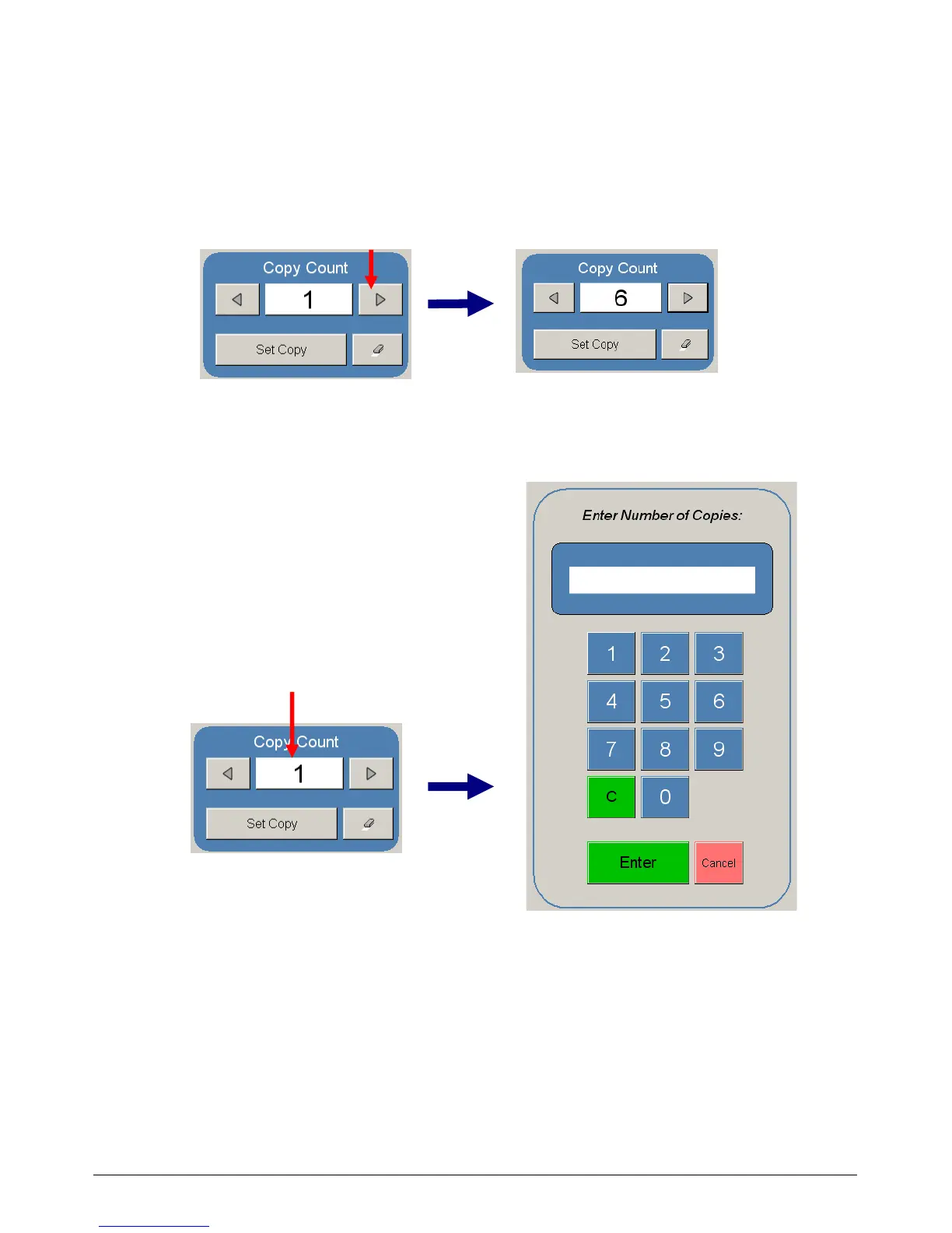 Press the “number of copies” value (which is a button) to set the desired number of copies