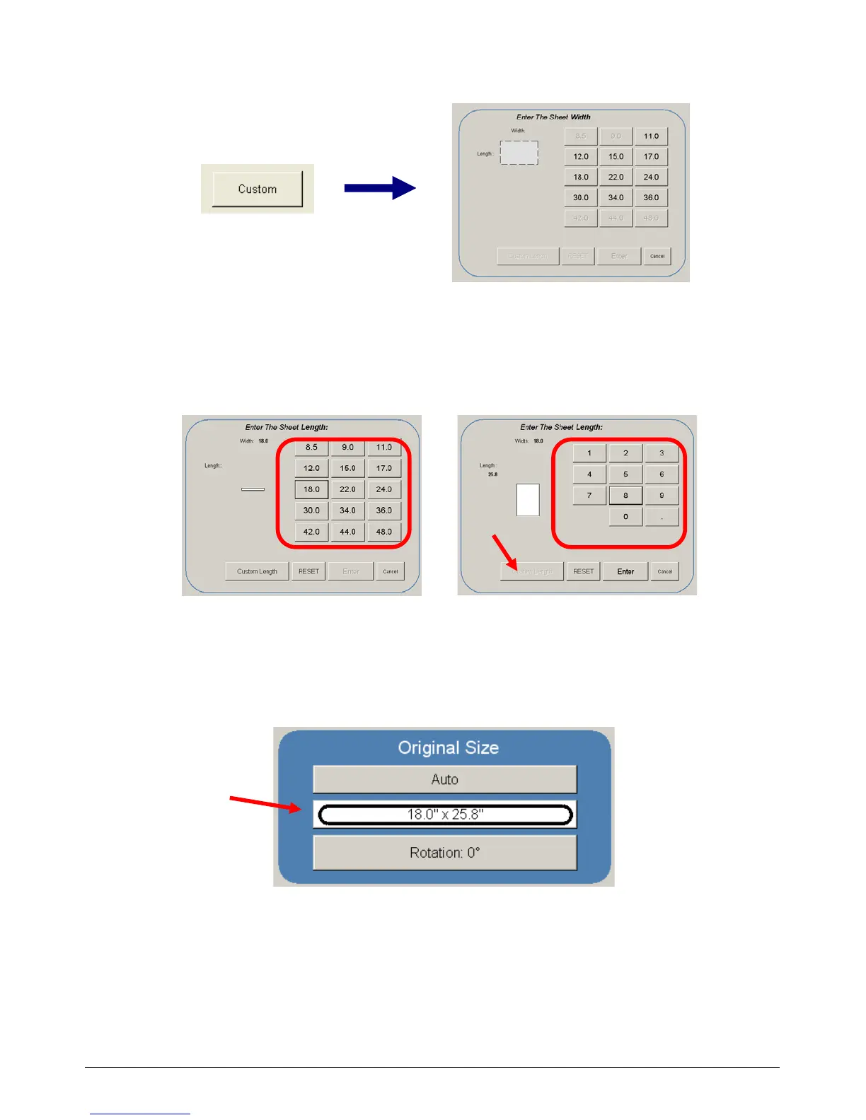 c) The cut length will now be displayed in the Manual button. In this example 18” width and a