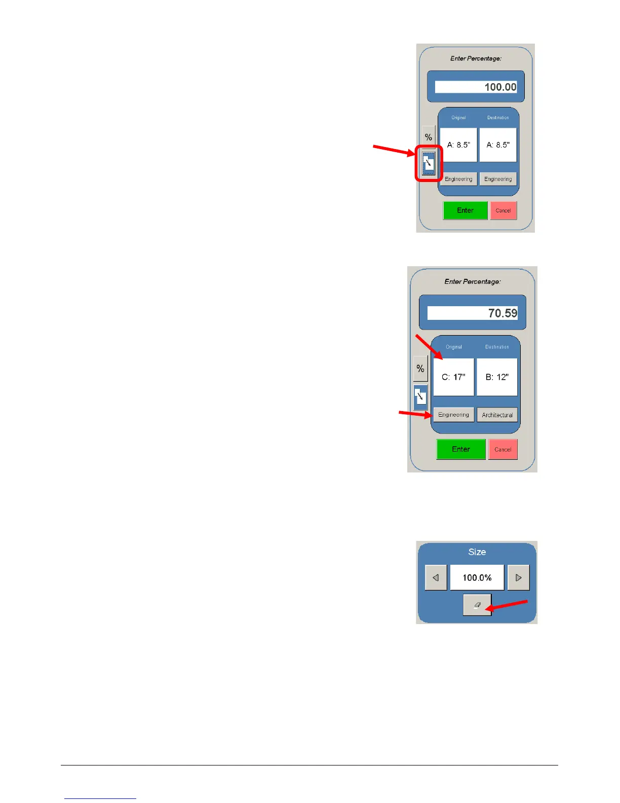 c) Select the original page size by pressing onto the