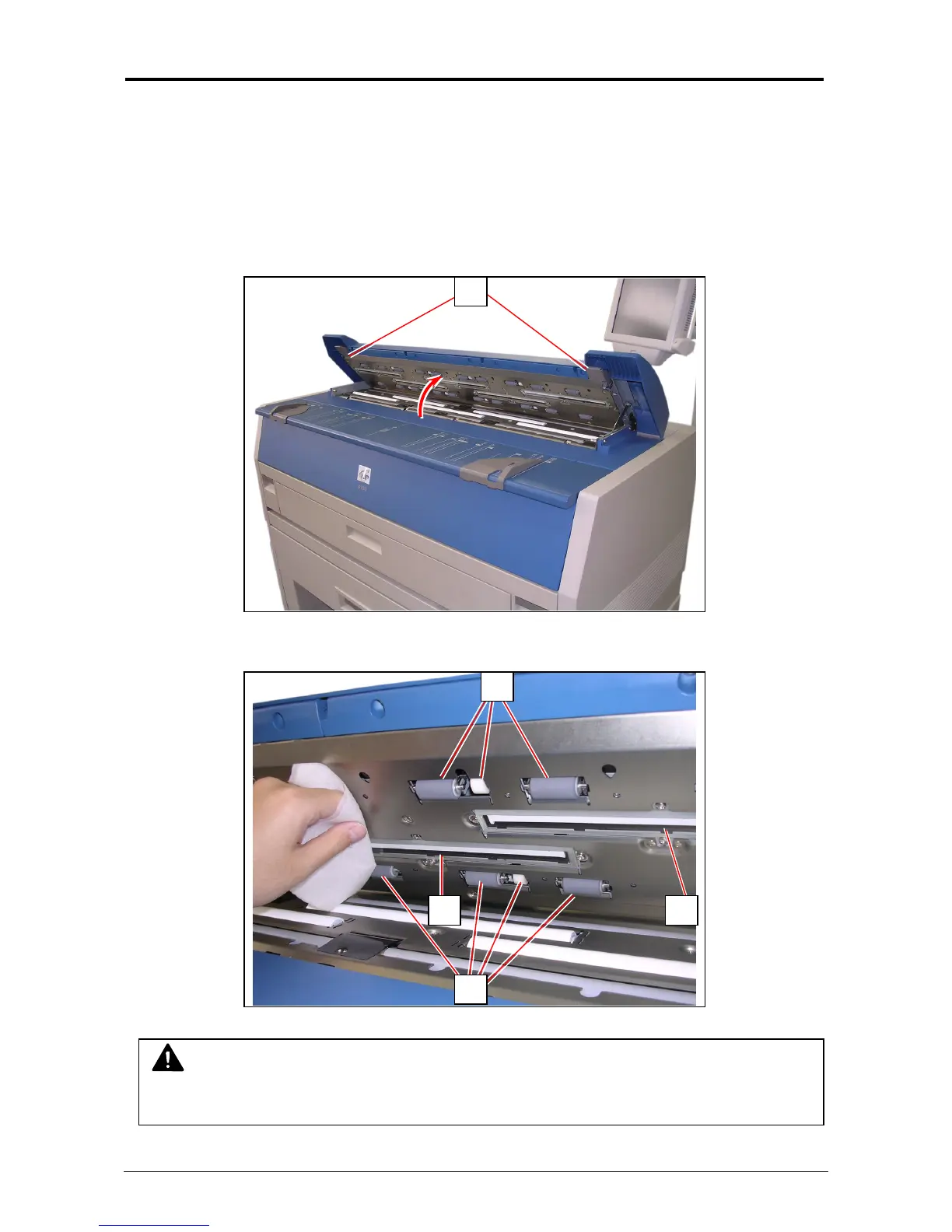 Clean each Scan Glass, Feeding Rollers and Guide Plates once per a week, as the scan/copy