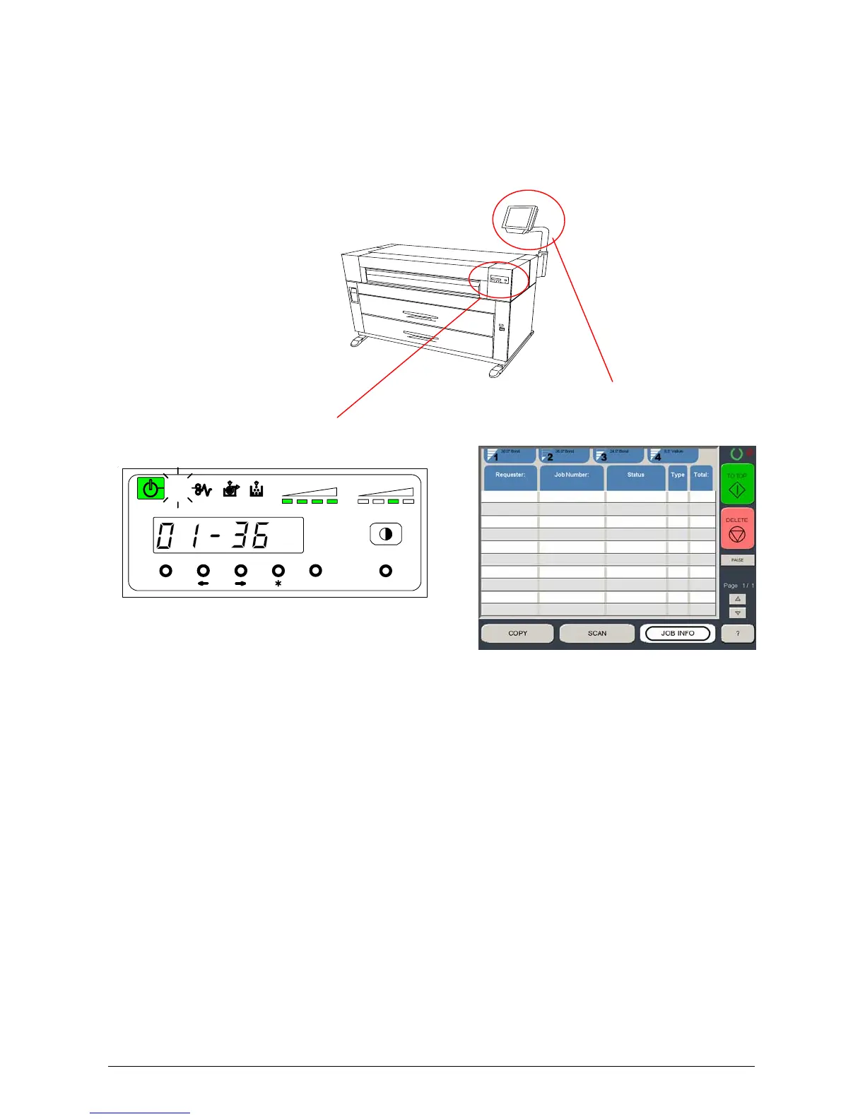Refer to the following page for indicators and basic functions of the Operation Panel / Touchscreen.
