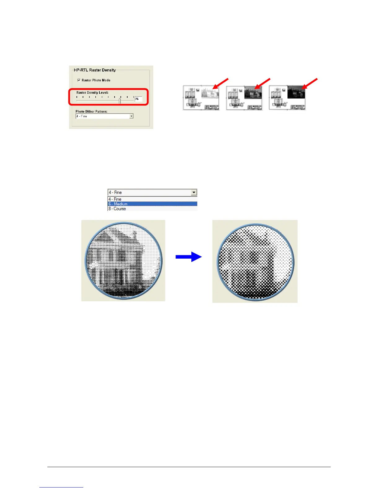 Users have 3 choices of raster dither output patterns. There is no ‘correct’ setting.