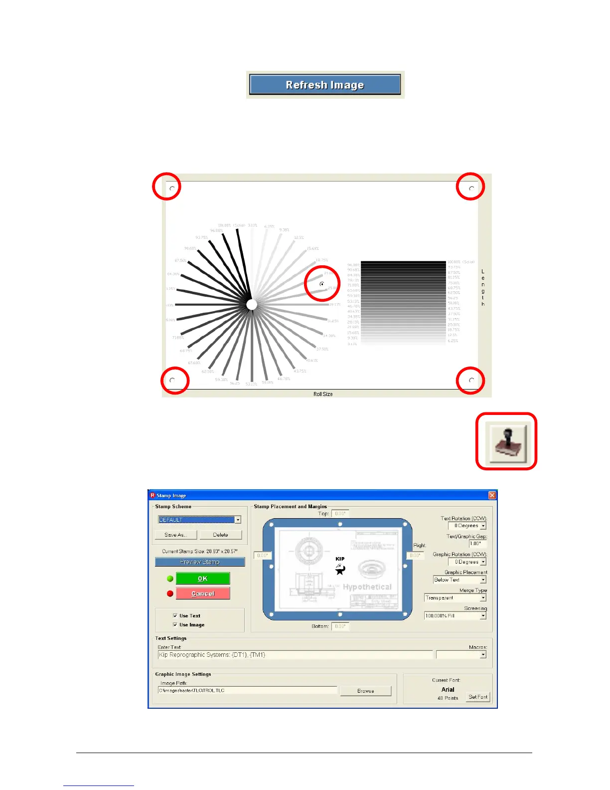 The stamp button allows configuration of watermarks, stamps or overlays of