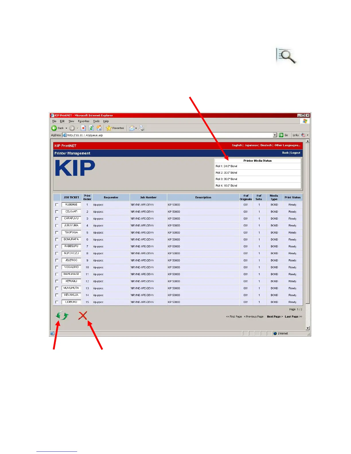 Select this button to manage and view the job queue in the KIP 5000 Printer.