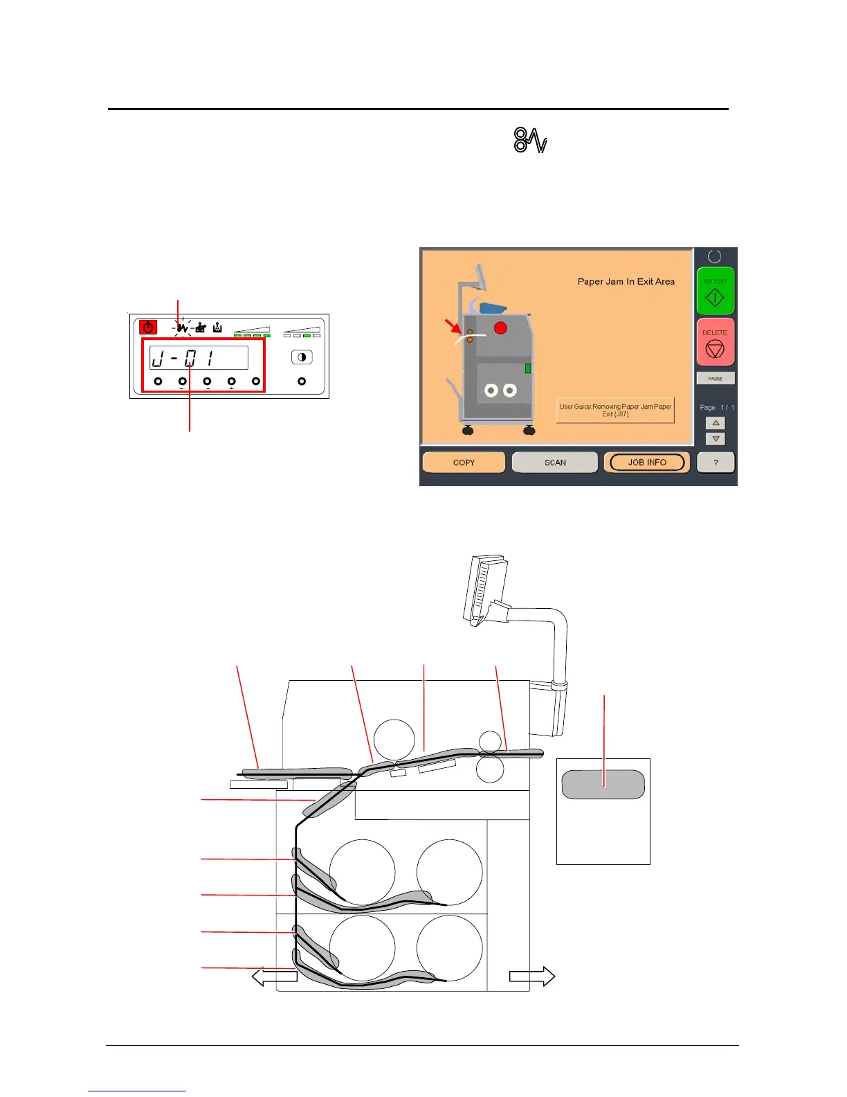 (J-XX) to let you know where the paper is mis-fed. The Touchscreen will describe the location and