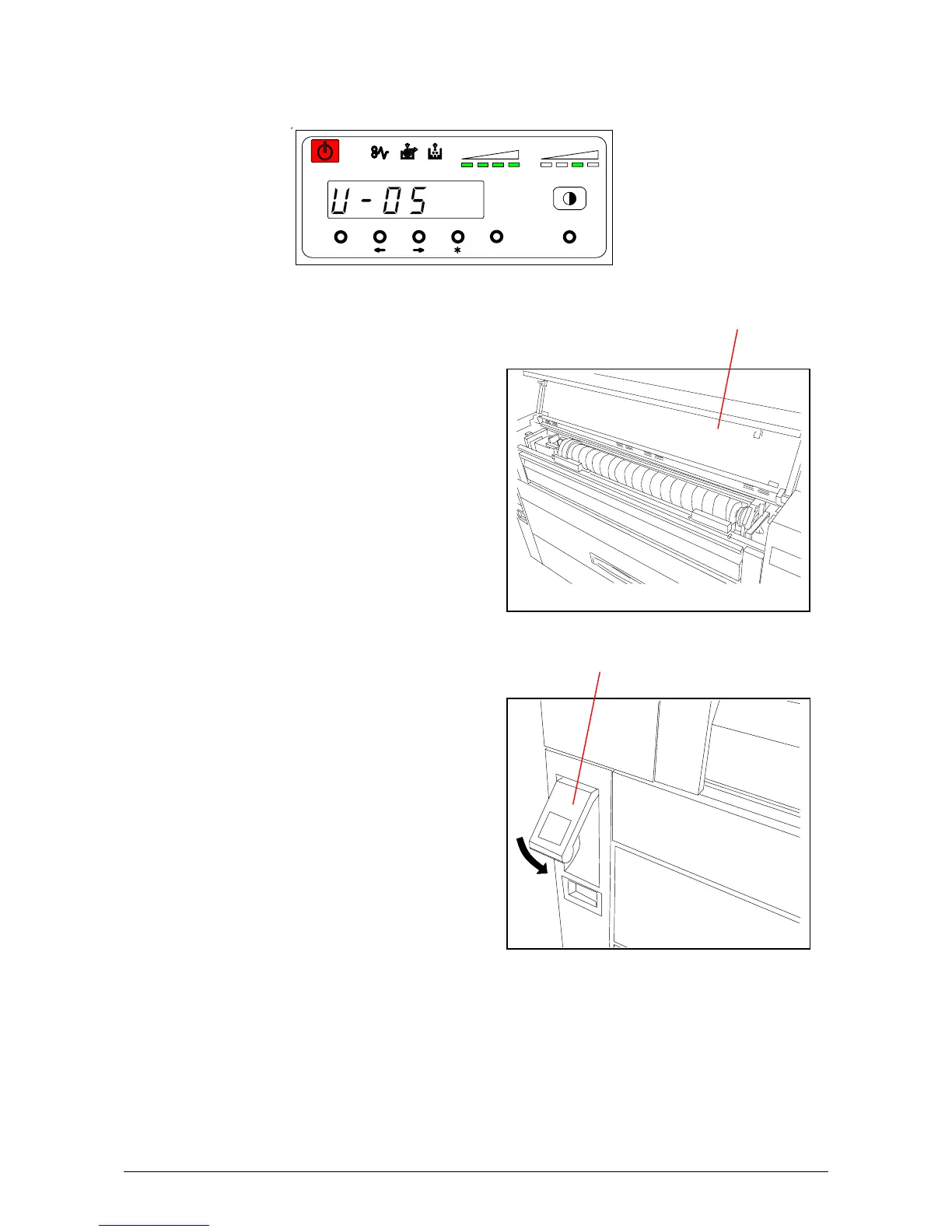 When either the Lever or the Toner Cover is open the Sub Display indicates a “U-05”.