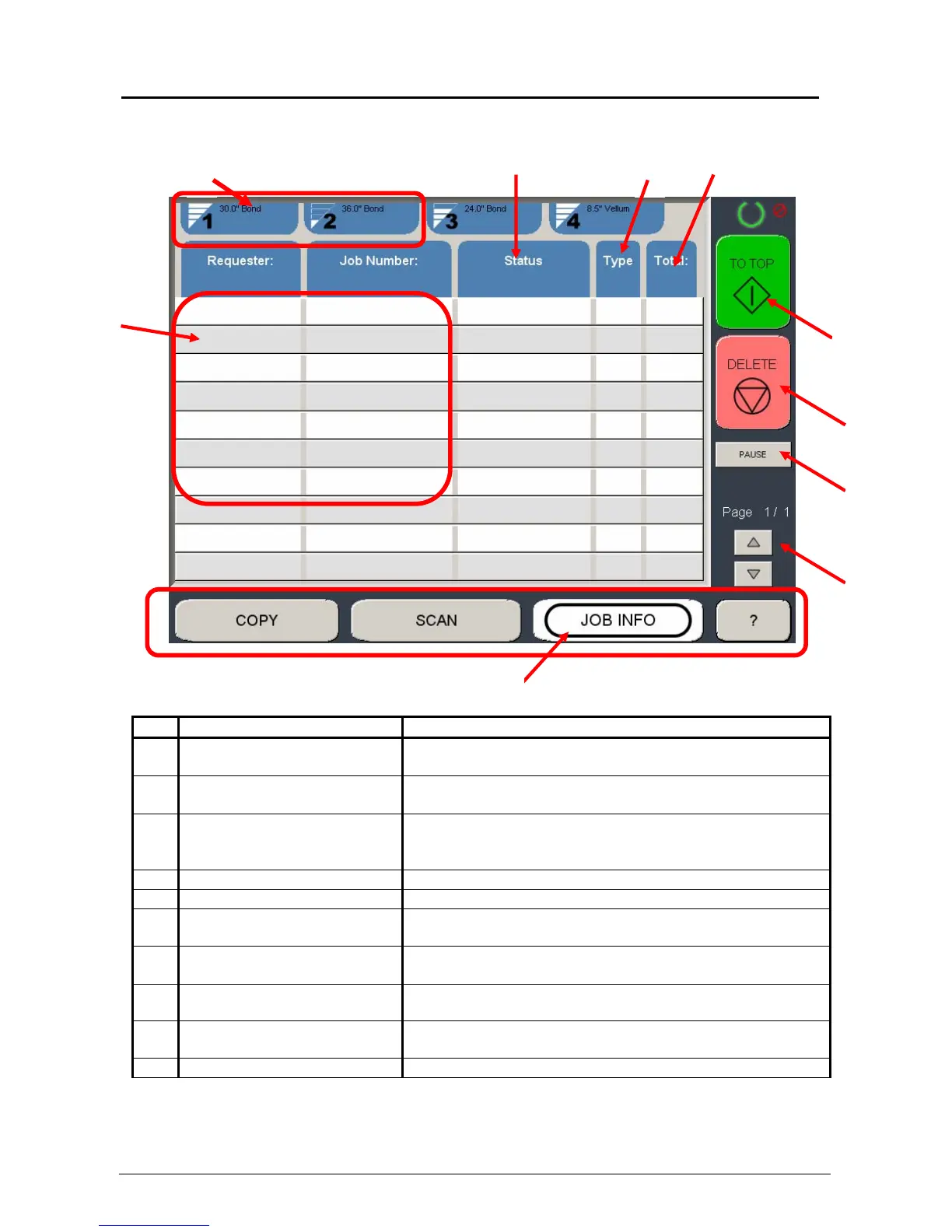 7 To Top After a job is selected (see #2) the position in the queue
