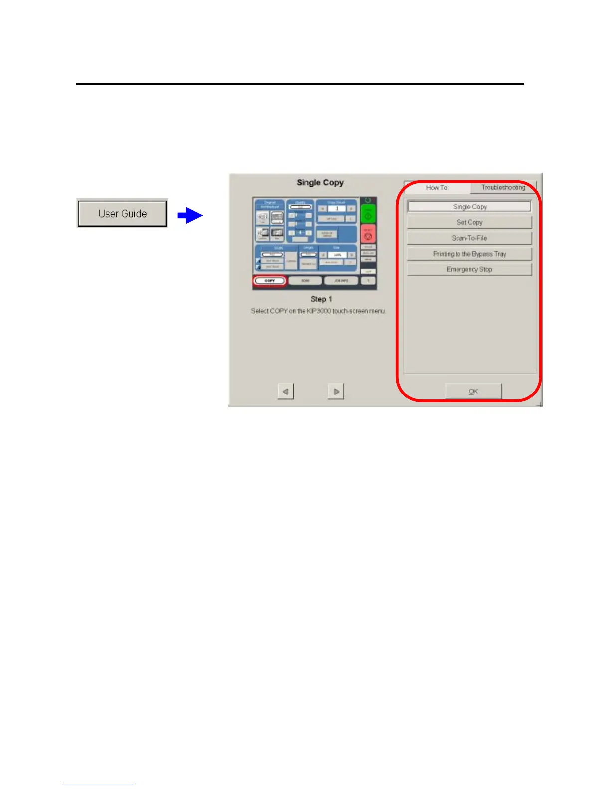 Press the User Guides button to gain access to the KIP 5000 User Guides on the KIP