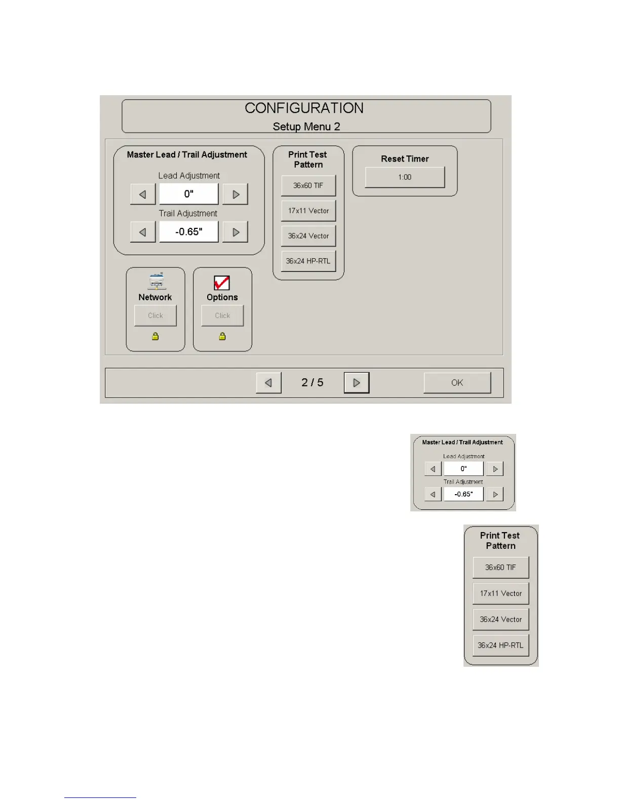 A variety of test patterns may be printed from the KIP 5000 operator panel on an