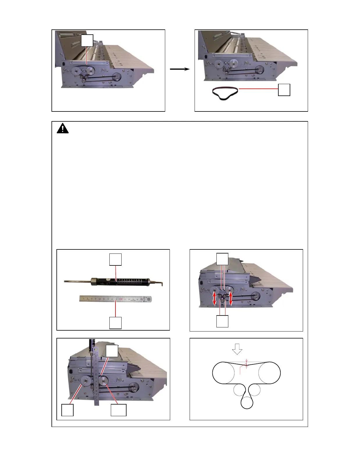 It is possible to adjust the tension of Belt 60S2M250 (6) by moving the Tension Pulleys (5)