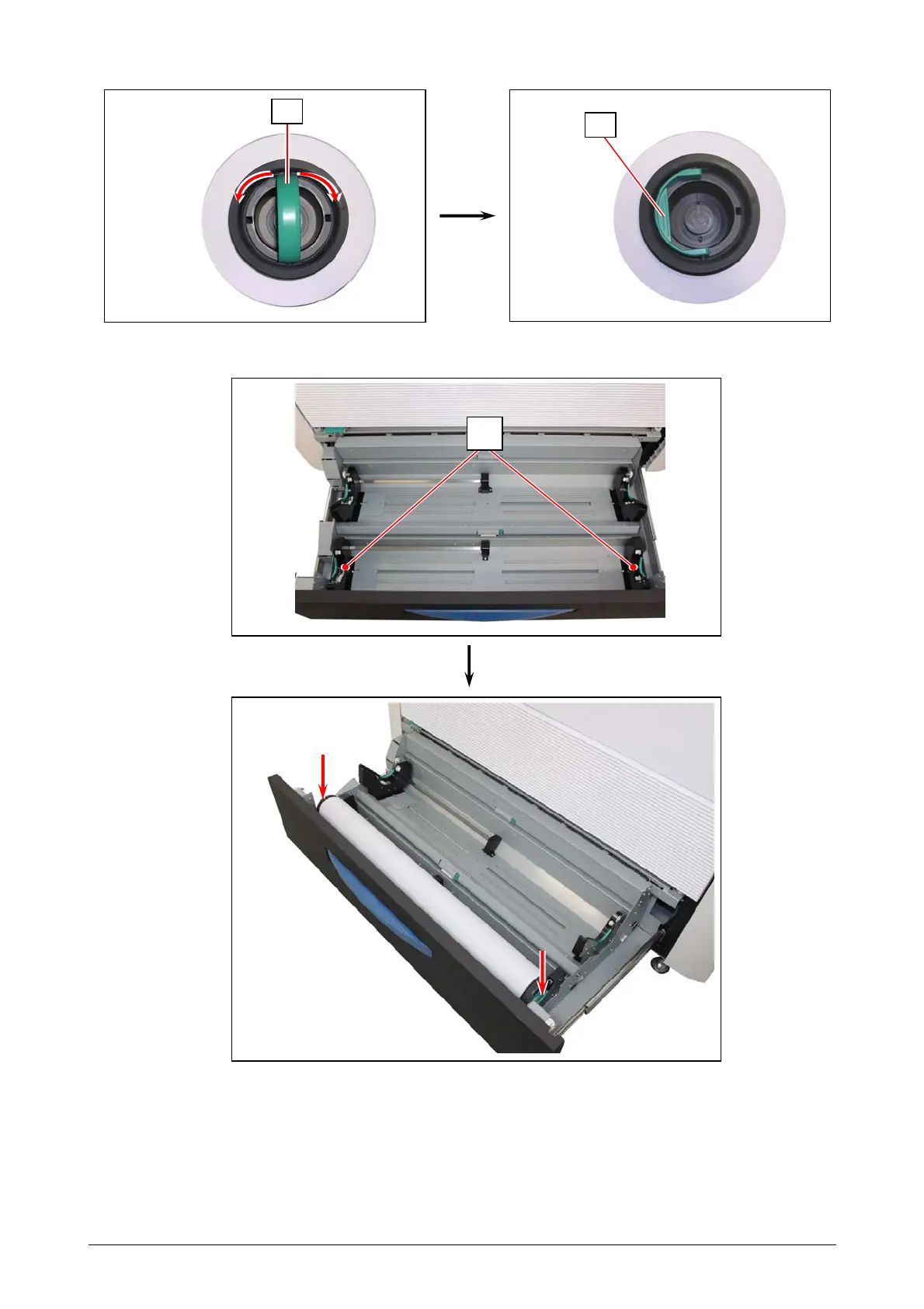 6. Fit both Flanges correctly into both Slide Guides (5) in the roll deck.