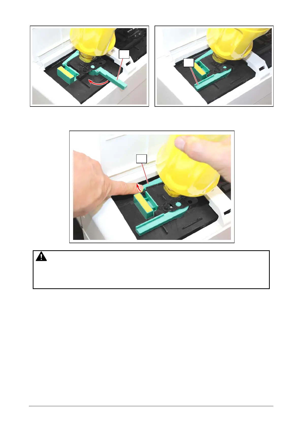8. With pushing the release lever (9) to the direction of the arrow, detach the Toner Bottle.