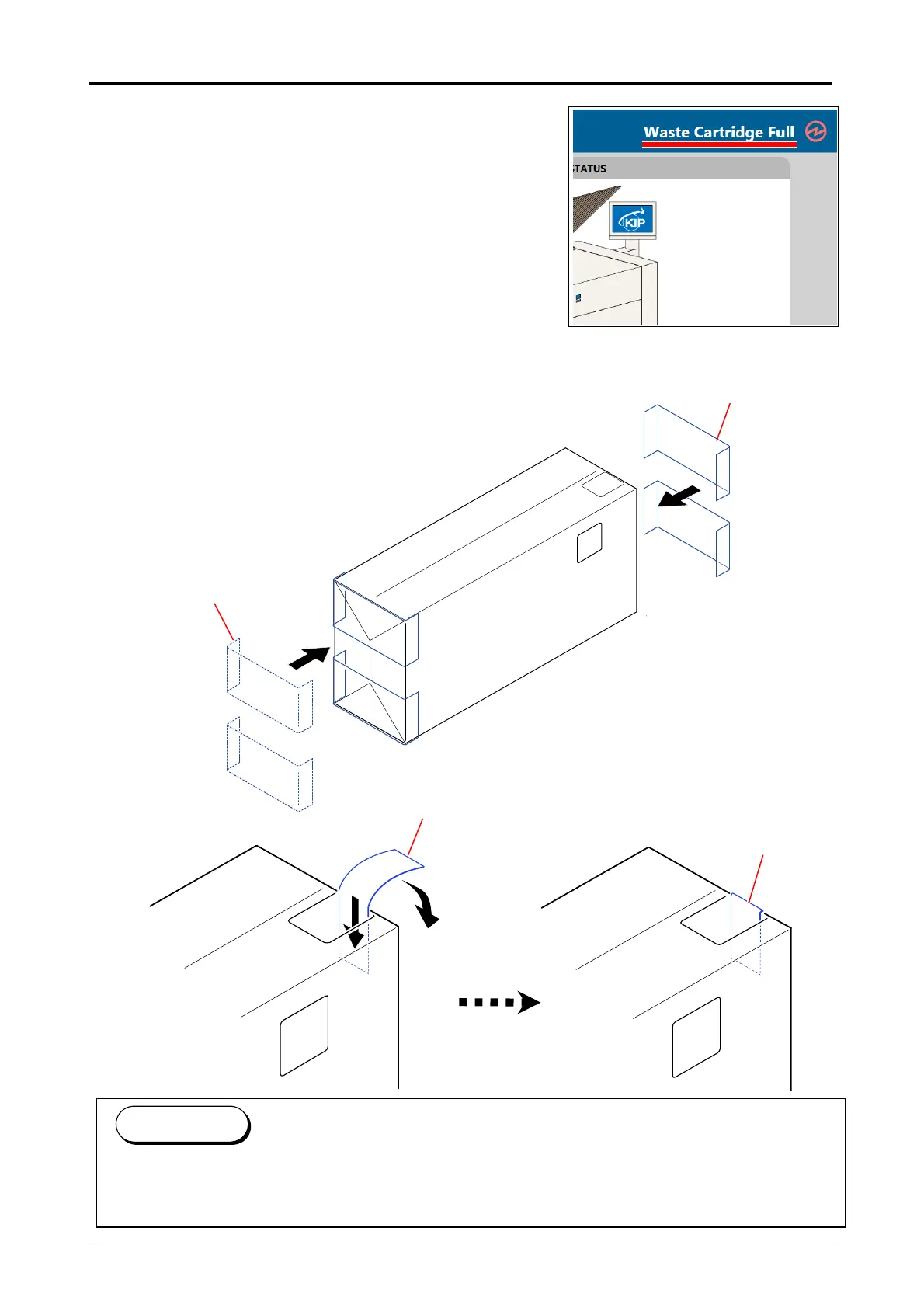 1. Follow the figures in below to assemble a new Waste Toner Box.