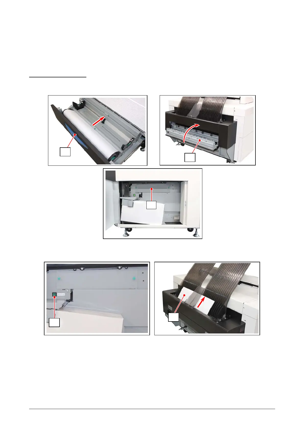 2. Press and hold the Purge Switch (4) until the media is cut, and the sheet (5) is ejected.