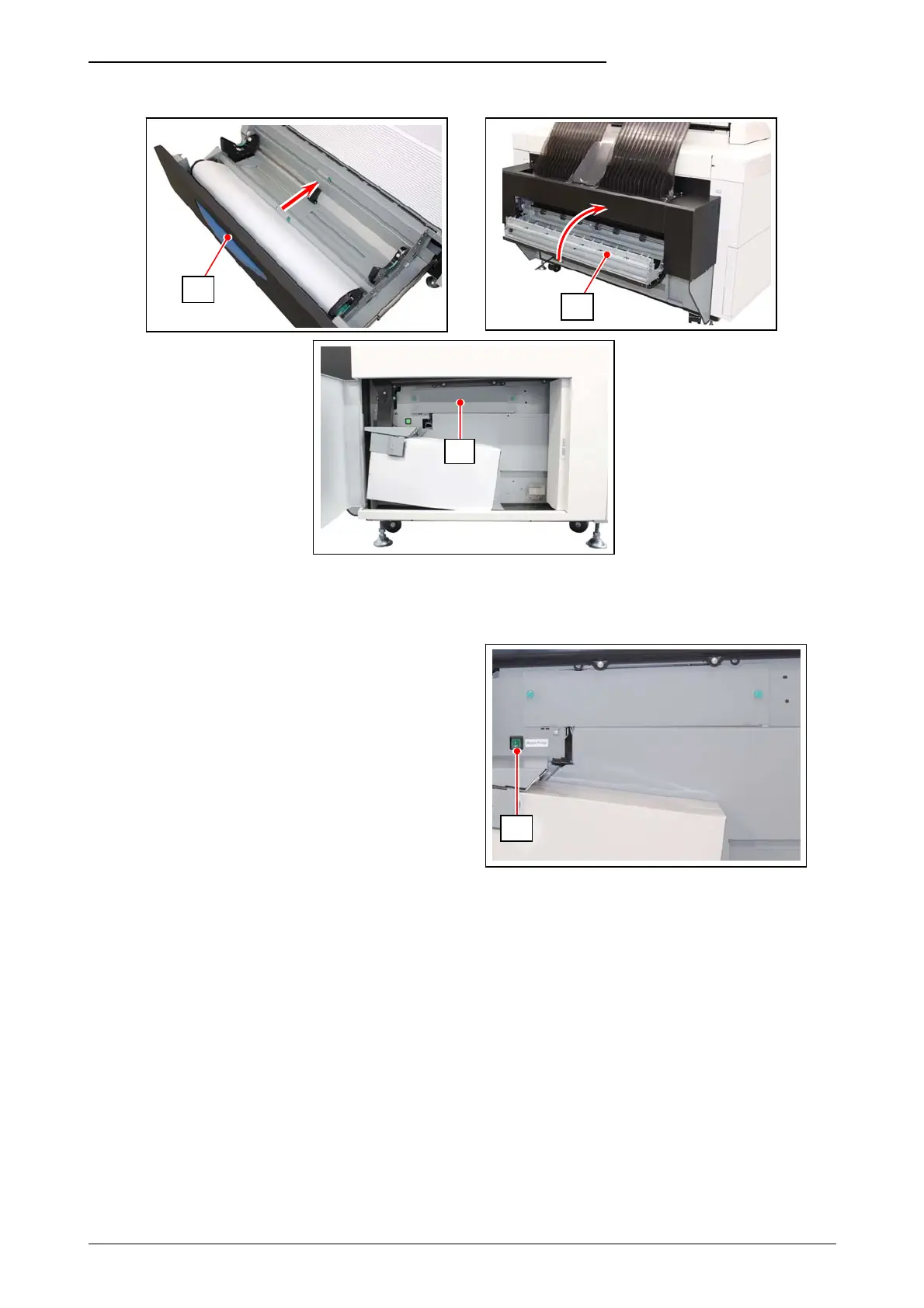 2. Press and hold the Purge Switch (4) until the media is cut.