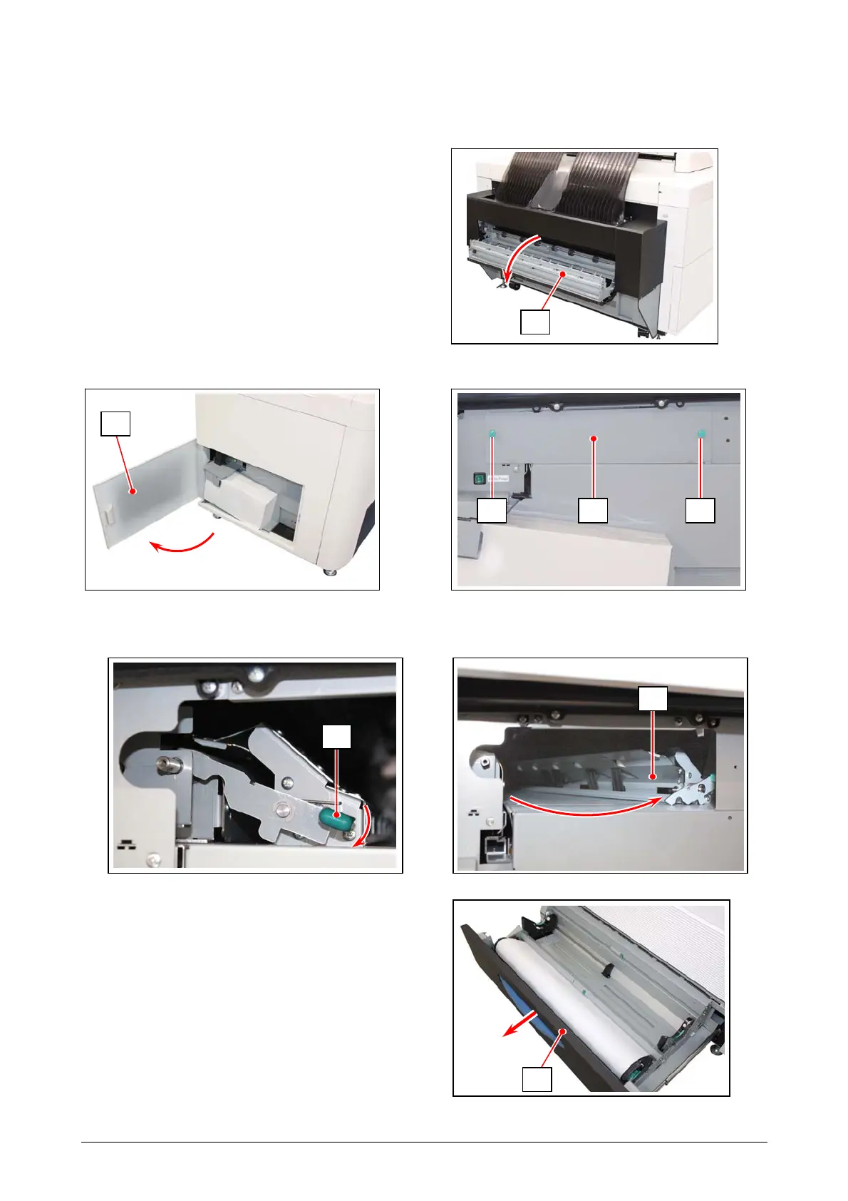 3. Press and hold the Lever (5) downward and then fully move (pivot) the entire Feeder Unit (6)