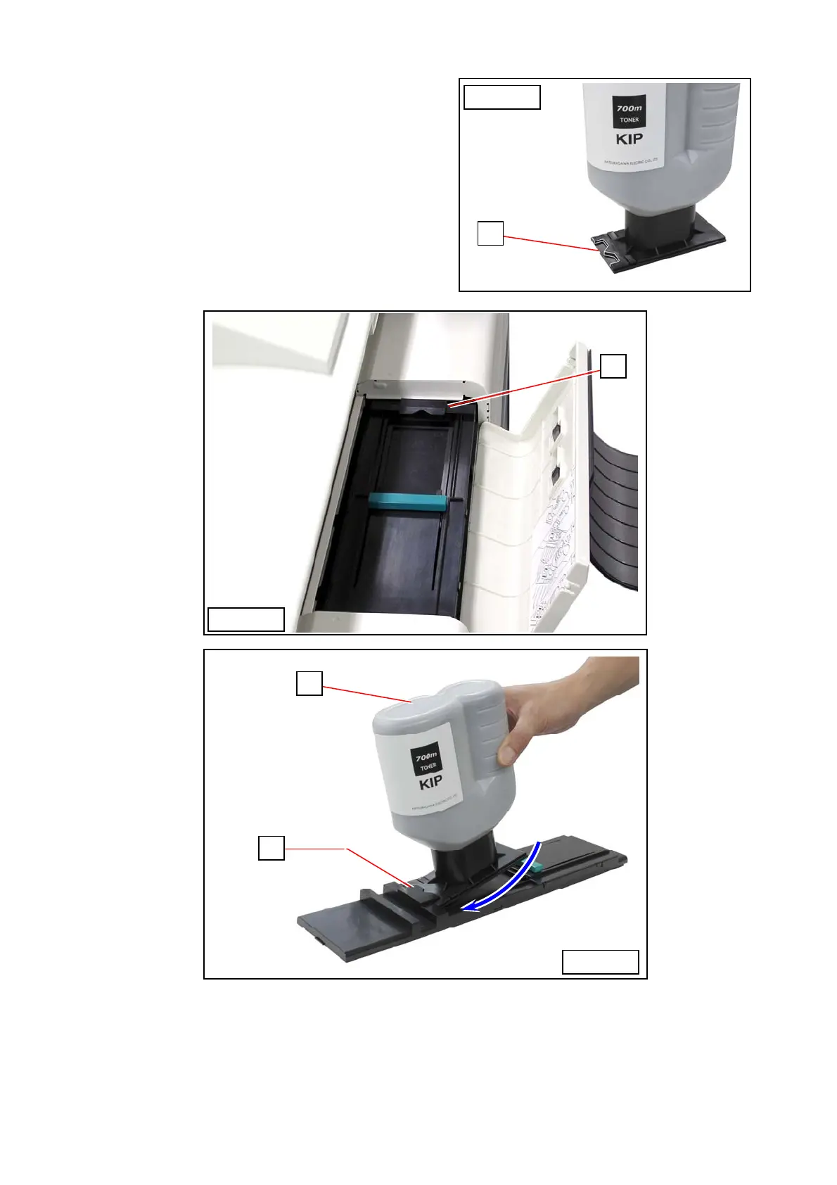 21. Put the dent area (26) under the holder (27) to firmly seat the bottom plate of the Toner Bottle