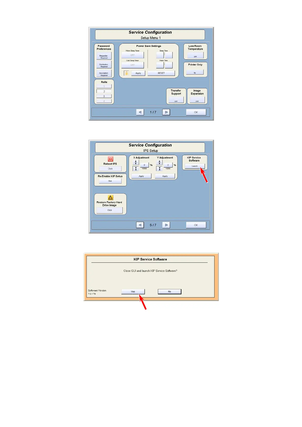 5. Use the arrow keys to open [5/7 IPS Setup]. Press [Launch] in “KIP Service Software”.