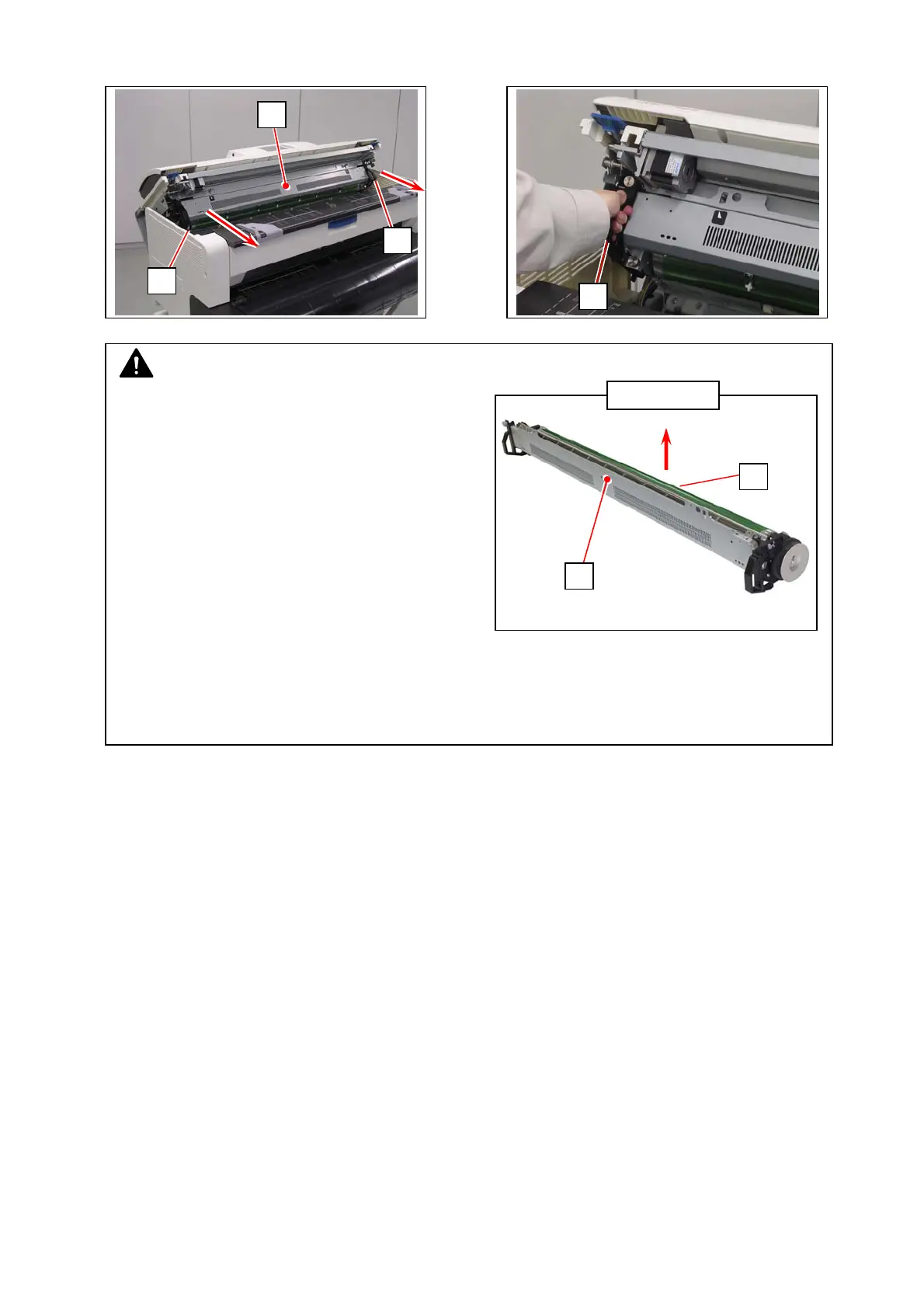 4. Hold the handgrip (6) on both sides. Pull the Process Unit (5) to the arrow direction to remove it