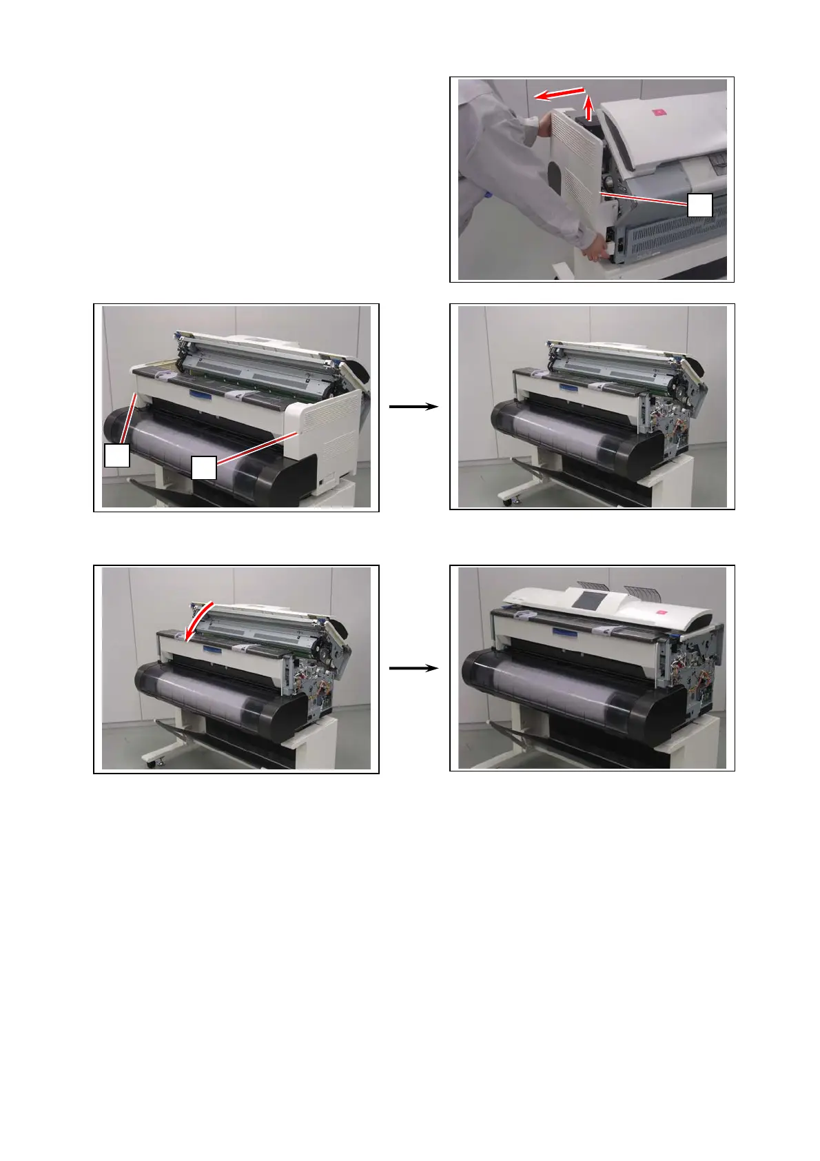 3. Slightly lift Side Cover L / R (3) up to the arrow direction to remove then from the machine.