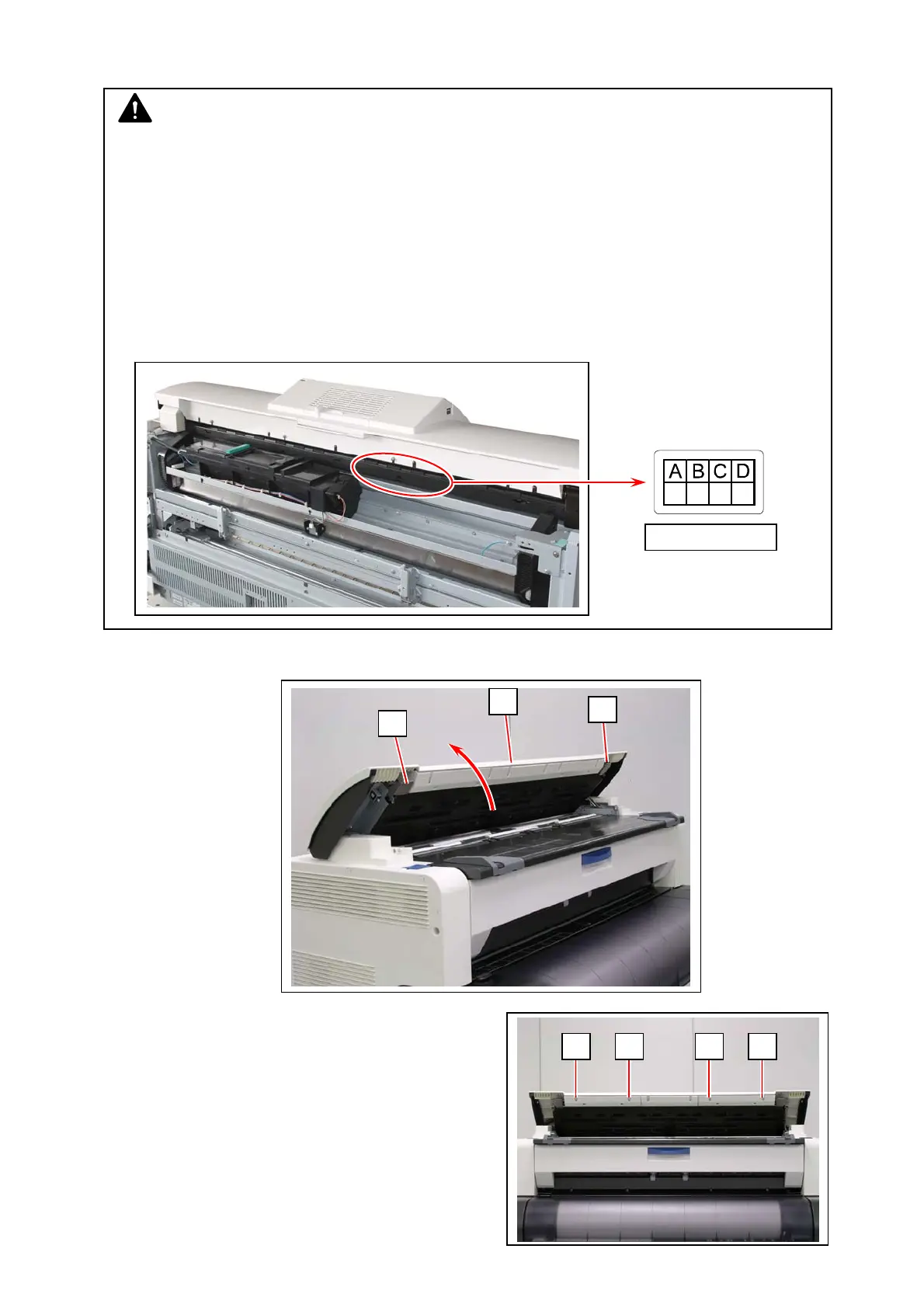 1. Lift up both sides (1) of the Scanner Unit (2).