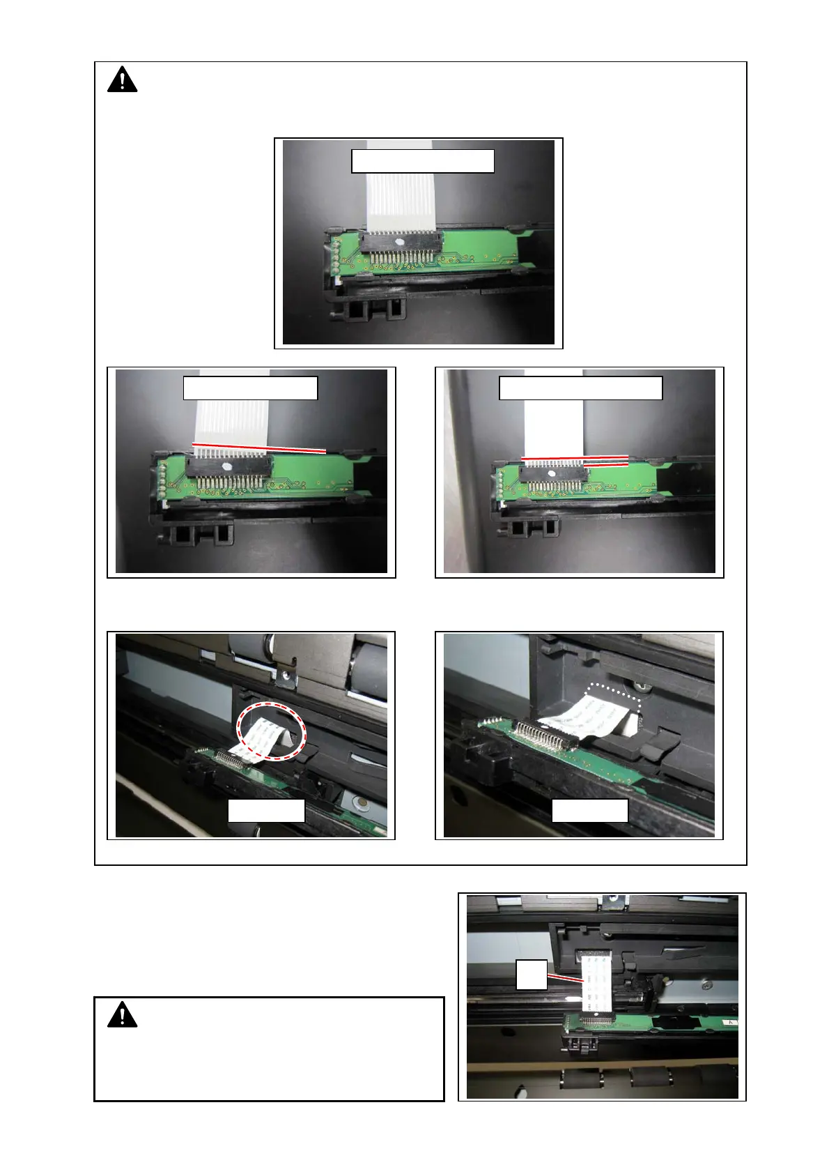 (3) For the flat cables, avoid skewing or half-insertion.