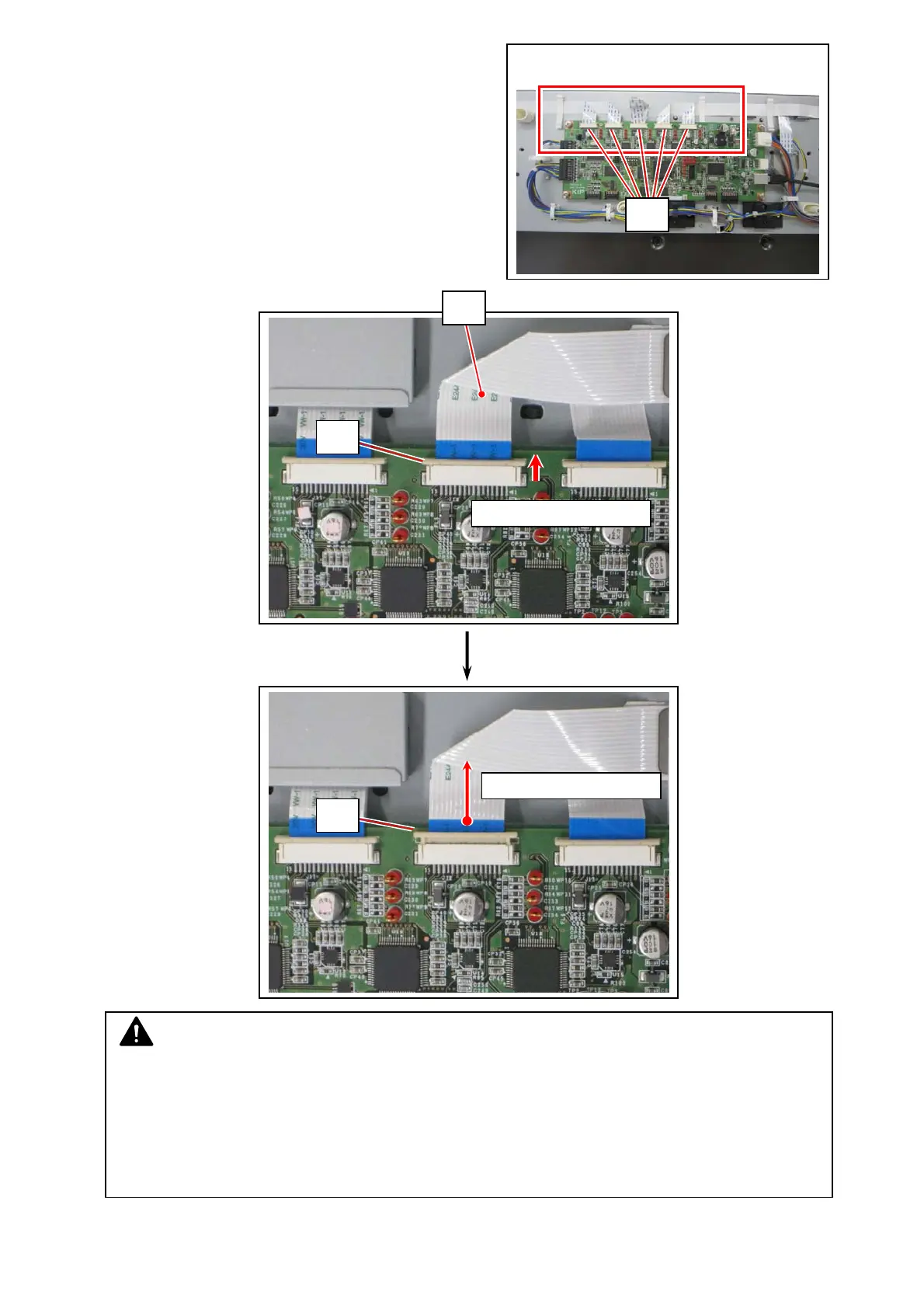 10. Unlock all the 5 flat cable’s terminal socket (12),