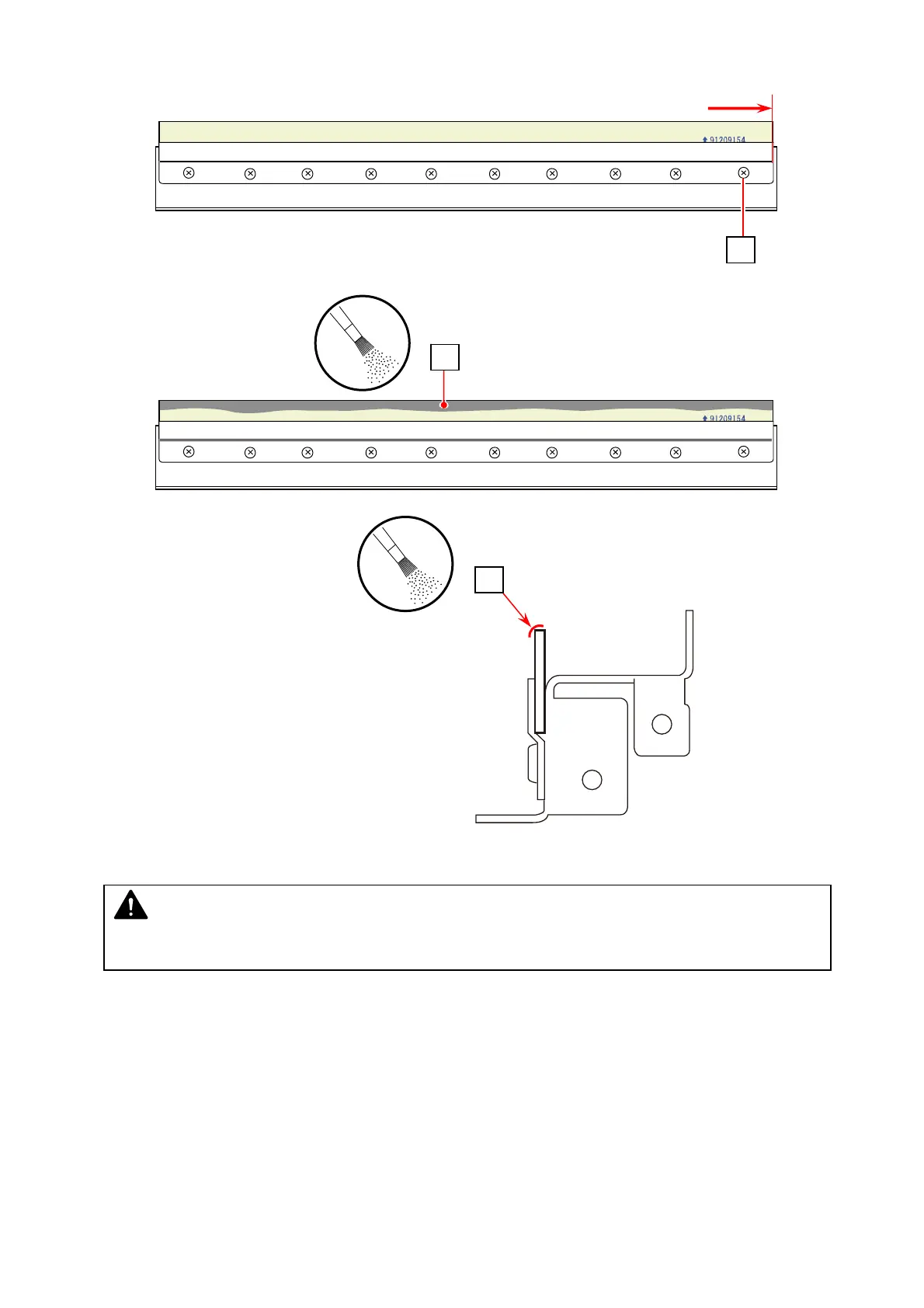 21. Apply the toner powder (27) on the Scraper’s tip edge.