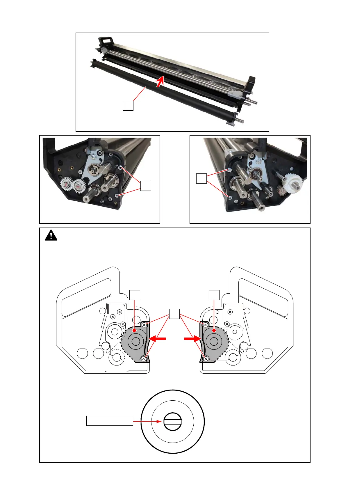 69. Install the new Developer Roller (60) and fix it with 4 screws (52: M4x6), taking care of the
