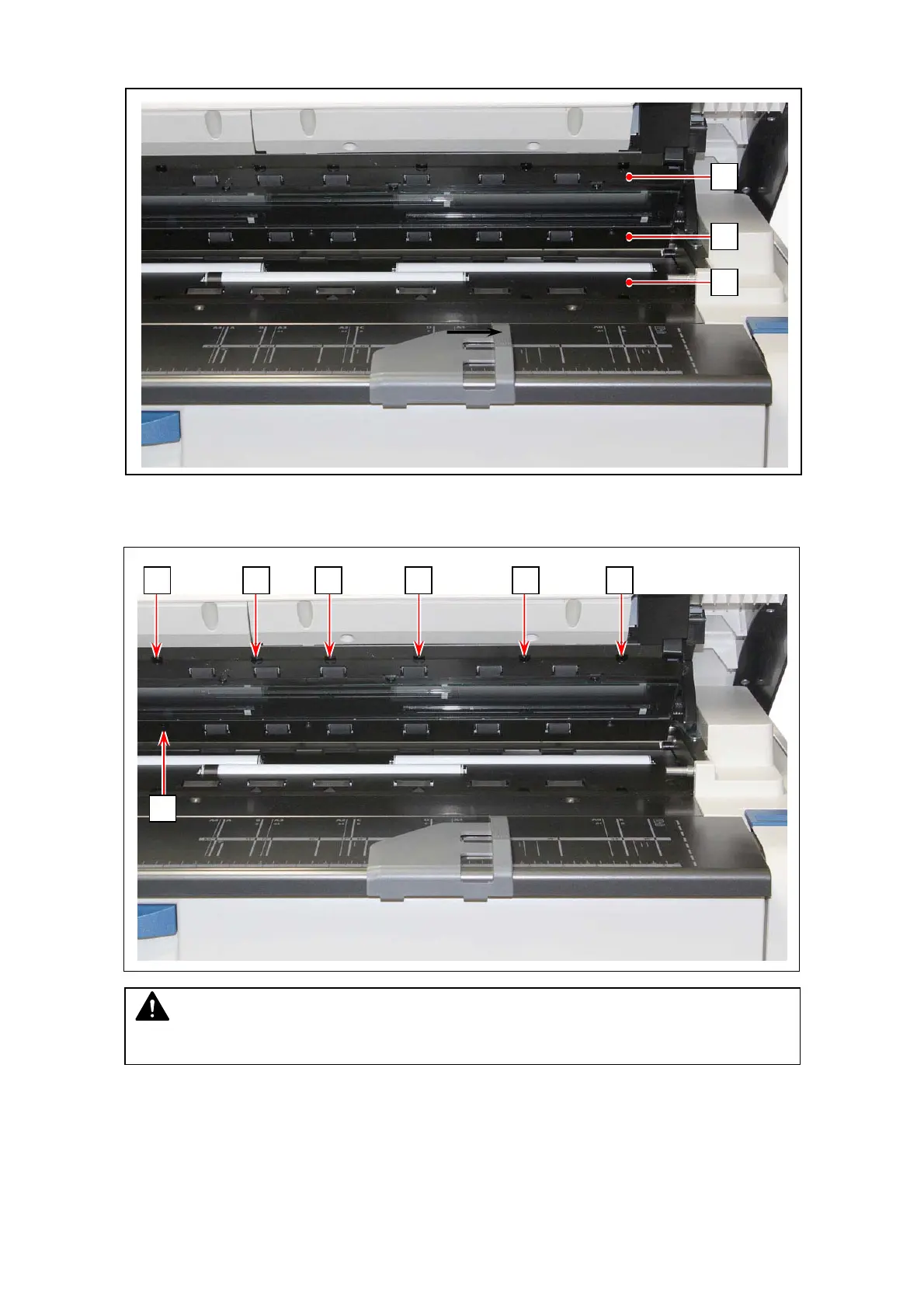 4. Wipe the Upper Guide Plate (5) and the Lower Guide Plate (6) with a dry cloth.