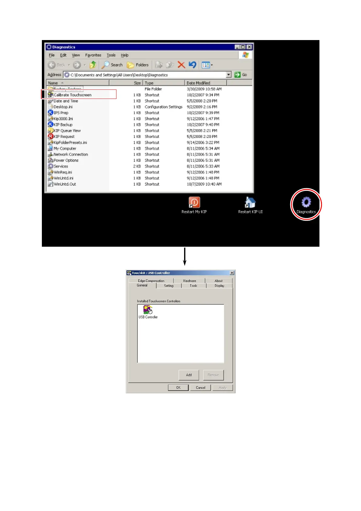 Run the shortcut “TouchScreen Configure Utility” for touch screen calibration.